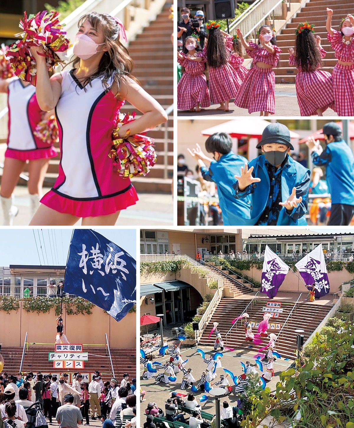 東日本大震災の被災地復興のため、2014年から開催されているチャリティーダンスイベント。当日は晴天のもと、キッズダンス、チアダンス、フラダンス、よさこい、ソーランなど20のダンスチームが練習の成果を披露した。同実行委員会会長の近藤一美さんは「コロナ禍でも、昨年も中止せず感染対策を徹底して行った。震災復興はまだ道半ば、ということを横浜でも知ってもらいたい」と話す。