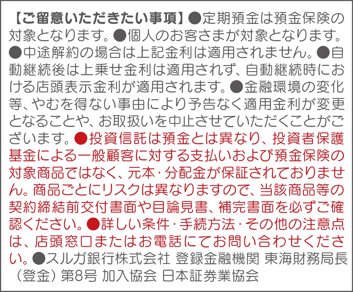 将来に向けた貯蓄や資産形成に、退職金の預け先や資産運用に、この機会にスルガ銀行のスーパー定期を利用してみては。