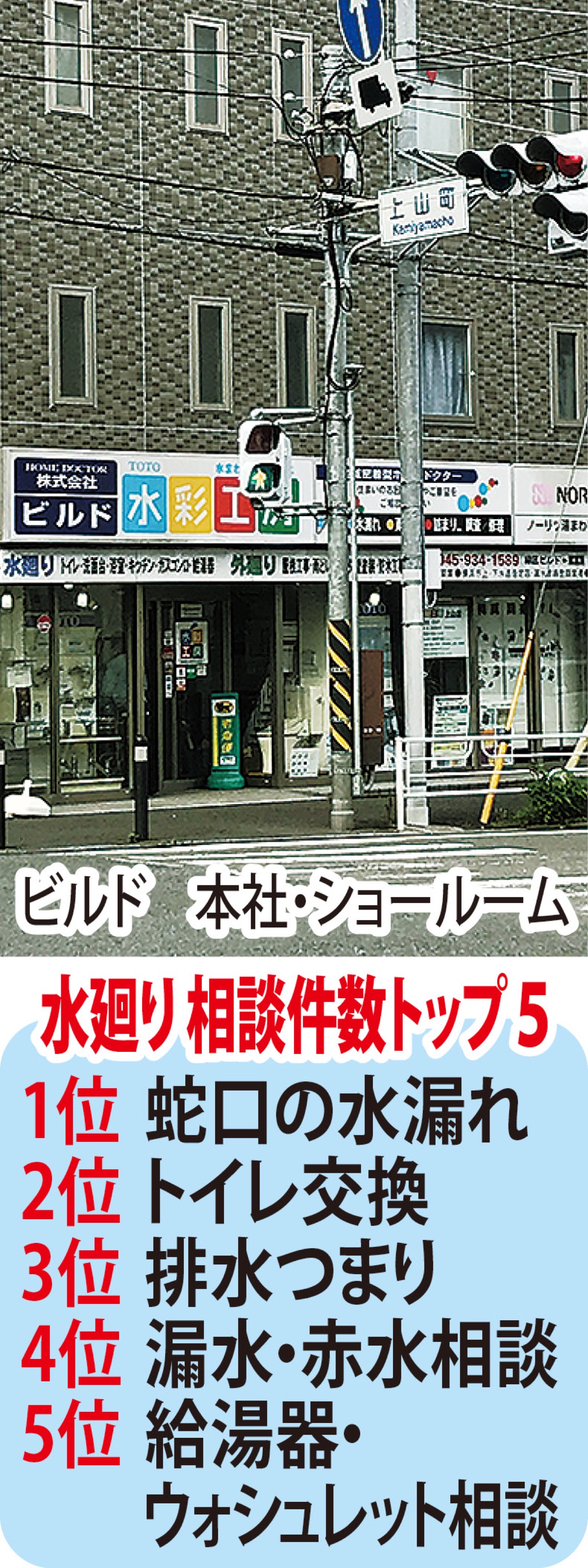地域密着型ホームドクターとして横浜市緑区上山に本社を置く、設立40年目を迎える(株)ビルドは、横浜市上下水道工事指定工事店として水廻りの修理や工事に長年取り組んできた。また、市水道局「菊名ウォータープラザ」にも店舗を構え、3年目を迎える。