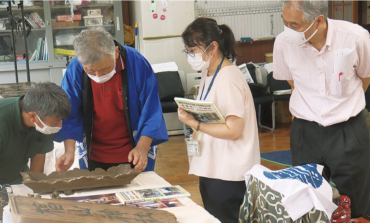 約2年前に転機を作ったのが村上さん。当時、地域の無料学習塾を主宰していた村上さんが、合格祈願で同神社を訪れた際にその歴史に興味を持ち、塾の会報の企画として調べ始めたのがきっかけだ。昨年からは、村上さんの活動を知った同神社奉賛会の副会長小谷田作夫さんも加わり、社殿に眠っていた文化財の調査や関係者へのインタビュー取材なども行い、徐々にその謎を紐解いていった。合併後70年の節目となった昨年には、神社と地域の歴史などをまとめた記念書籍も発行。村上さんは「神社の歴史を通じ地域を知り、郷土愛を深めてもらいたい」と研究への思いを語る。