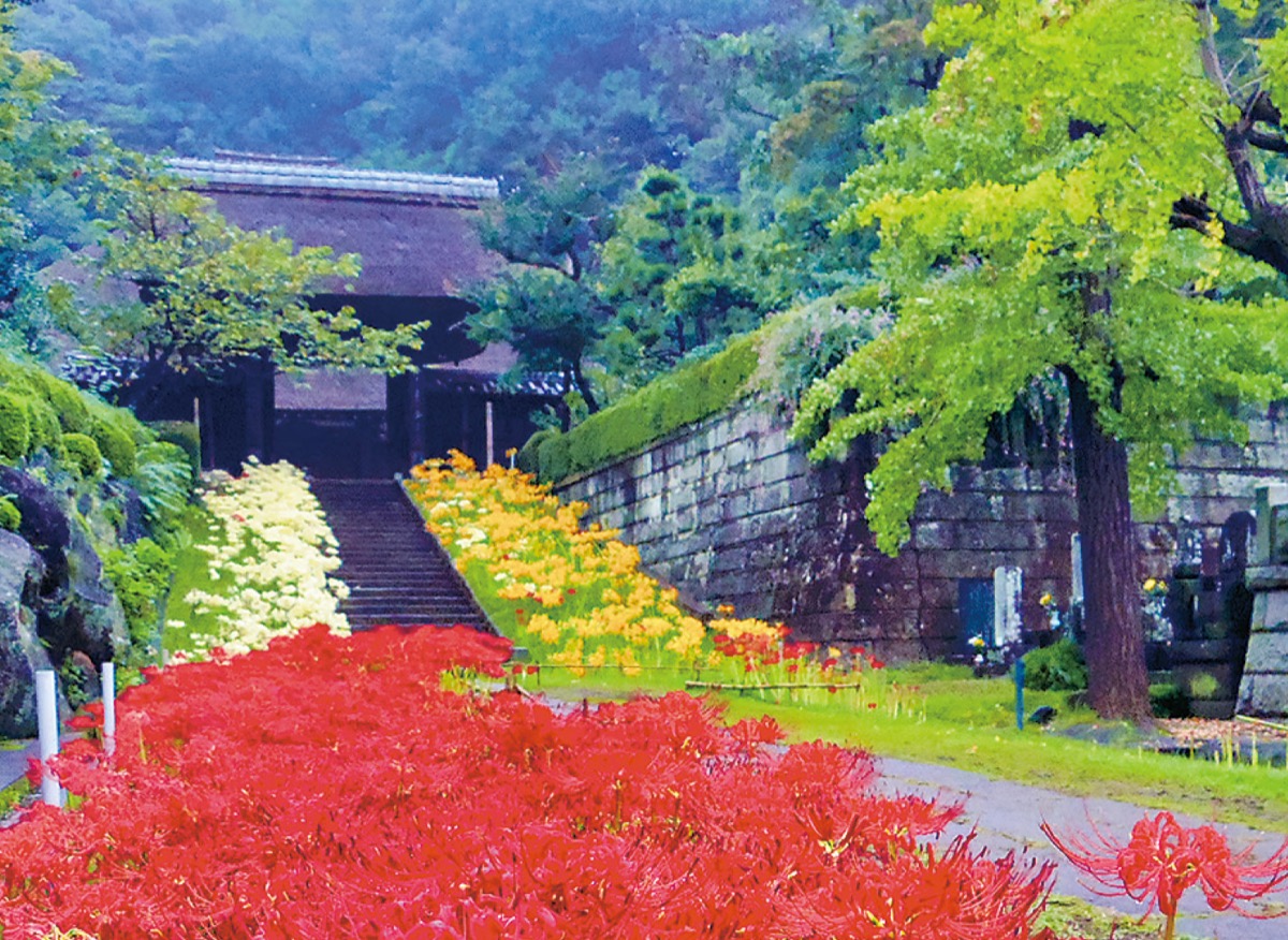 新羽駅より徒歩5分、真言宗西方寺は、およそ8百年前に鎌倉に創建され、その後およそ5百年前に現在の地に移建された歴史ある寺院。秋には、彼岸花の名所としても知られており、四季折々のお花見が楽しめる「花のお寺」だ。