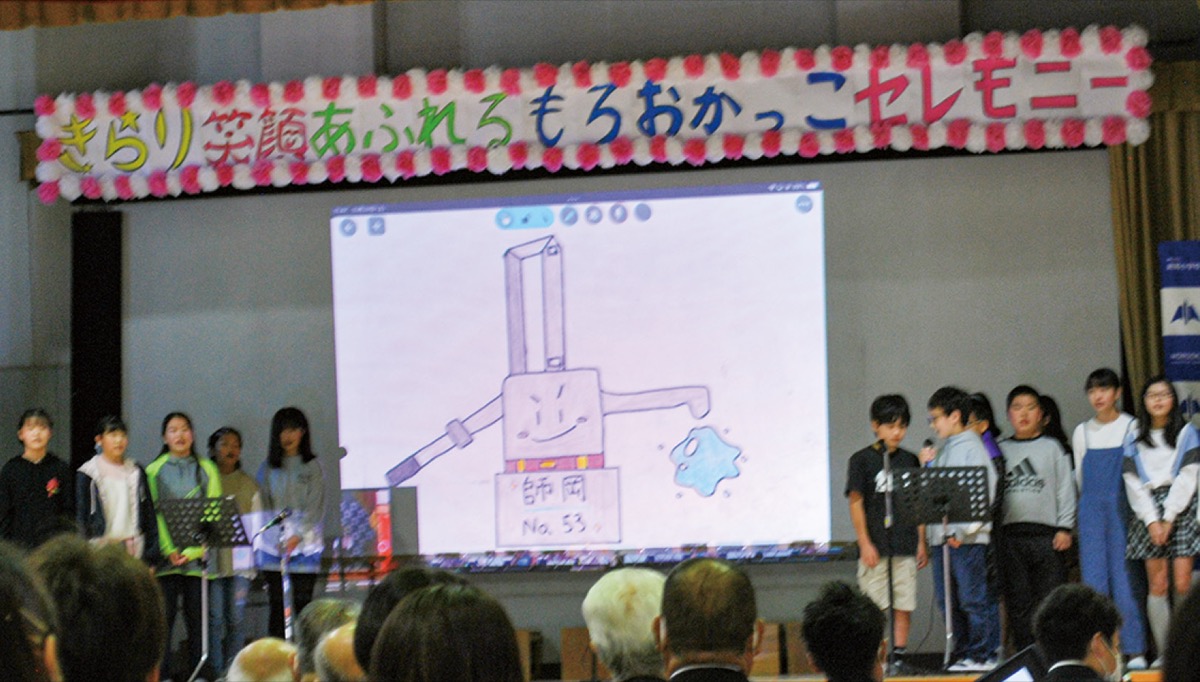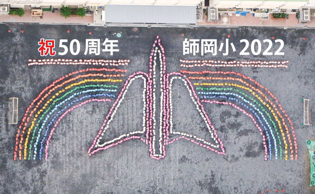 10月29日、師岡小50周年記念式典「きらり笑顔あふれるもろおかっこセレモニー」が開催された。当日は体育館を会場に6年生および来賓やPTA役員等が集まり、1〜5年は各教室でオンラインで式典に参加した。