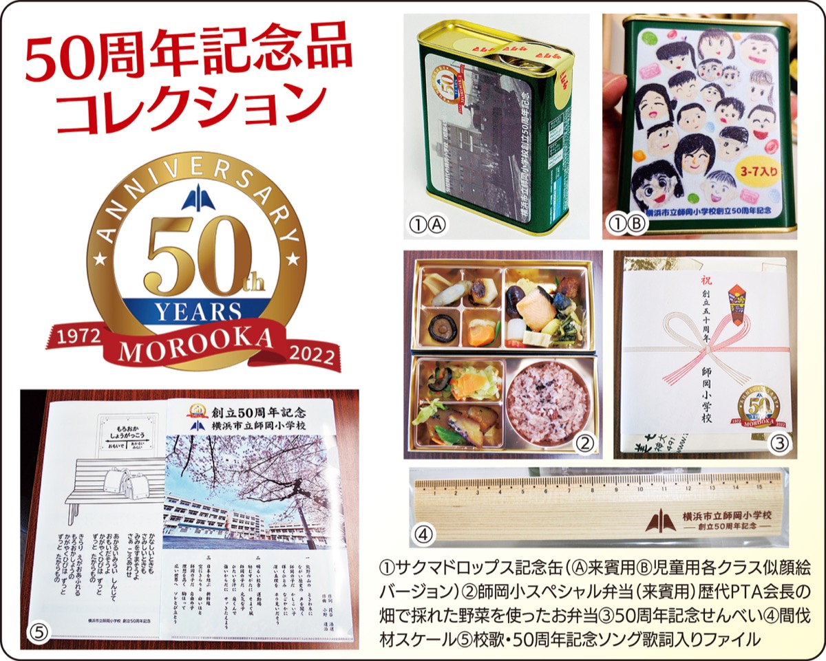 学校主体では全学年が合唱や合奏を披露する音楽会を10月に開催。師岡オリジナルかるたも作成中。さらに同校栄養士が企画した「タイムマシン給食」では29日の記念式典当日には、50年前(1972年10月)の給食献立を再現した。