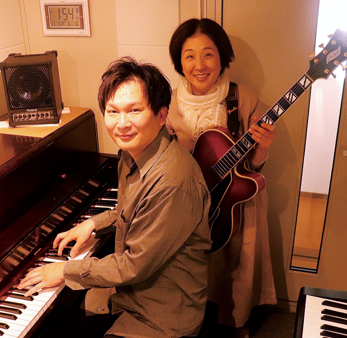 演奏を担当するのは、大野珠路さん(ボーカル・ギター/49)、むげんさん(ピアノ/48)の夫婦デュオだ。高校の同級生で、20代から一緒にバンド活動もしていた二人。社会人でもそれぞれ音楽活動をしていたが、「年齢とともに辞める仲間も増えて」と40歳頃に音楽から離れた。