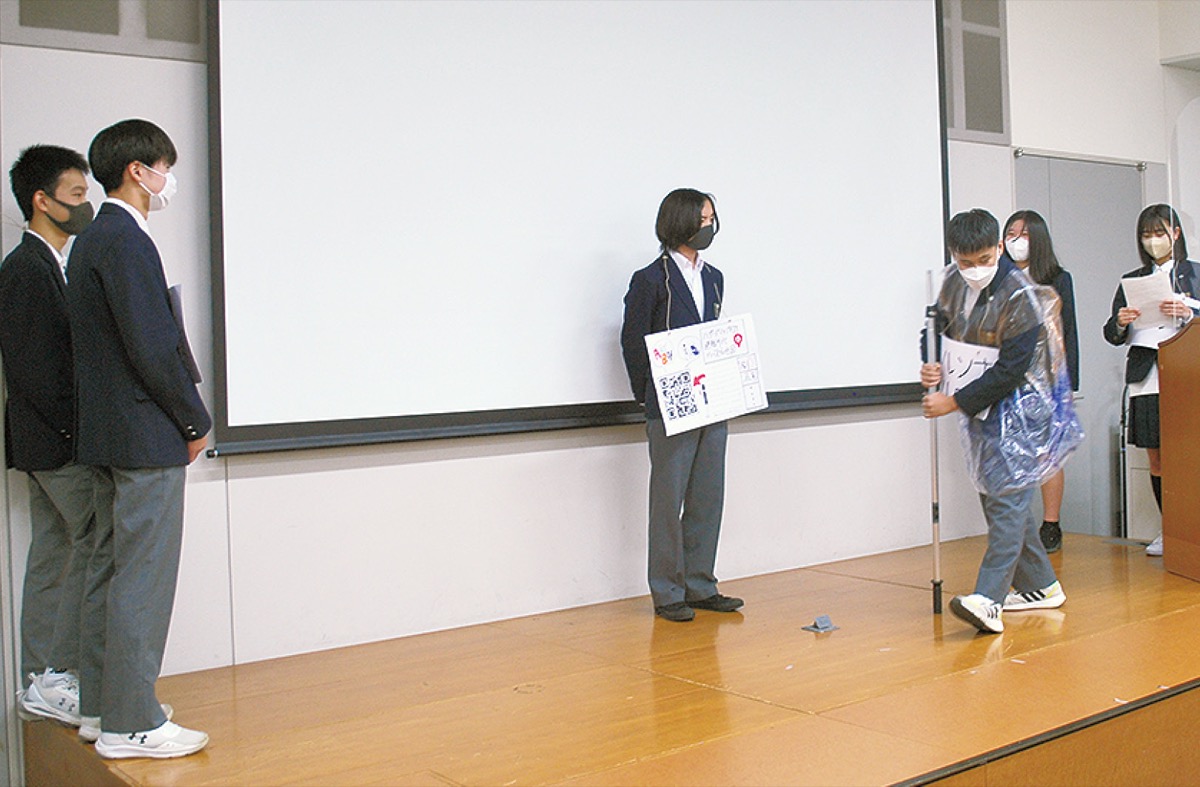 慶應義塾大学日吉キャンパス内で行われた発表会当日は、3年生18グループ中、代表の6グループが寸劇と「カスタマージャーニーマップ」と呼ばれるマーケティング手法を取り入れたシートを使い、プレゼンテーション。各グループは、災害時に弱者になりやすい人を「車いすを使っている高齢者」「日本語がわからない、子どもを連れた親」などと設定。これらに基づき発表した。