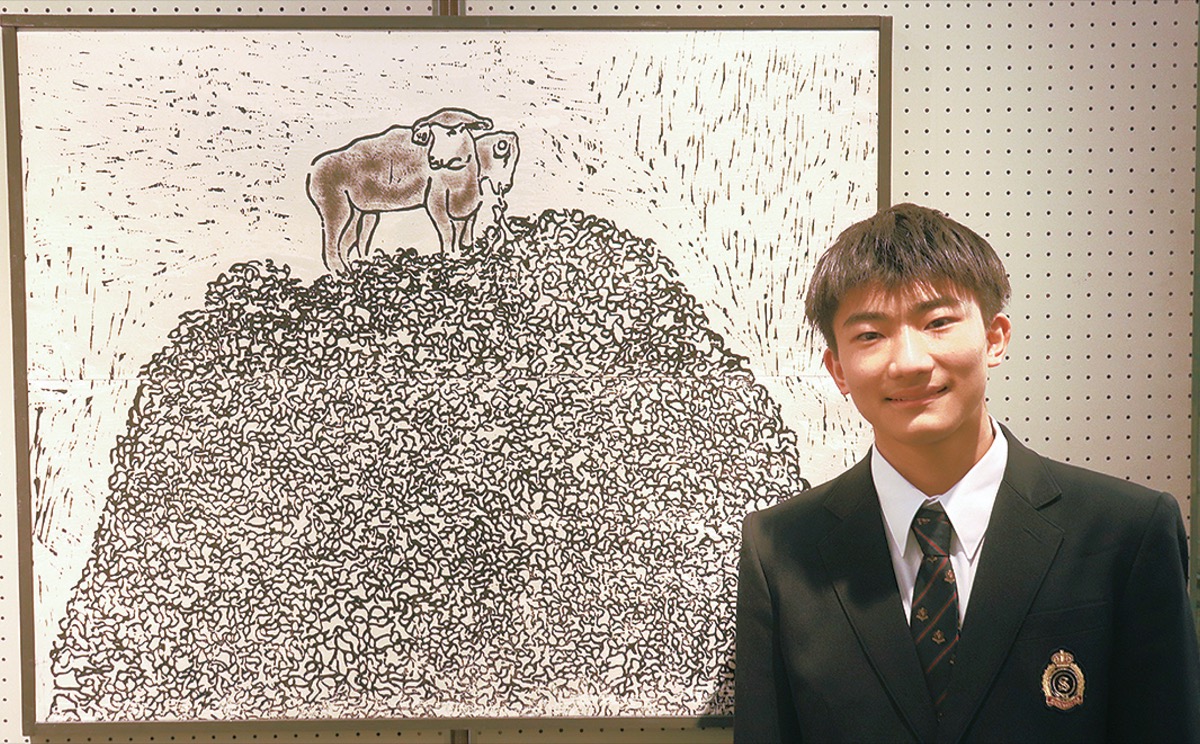 港北区在住の木版画作家・石原陸郎さん(16)の絵画展「回転sheep」が、1月末に横浜ラポールで開催された。