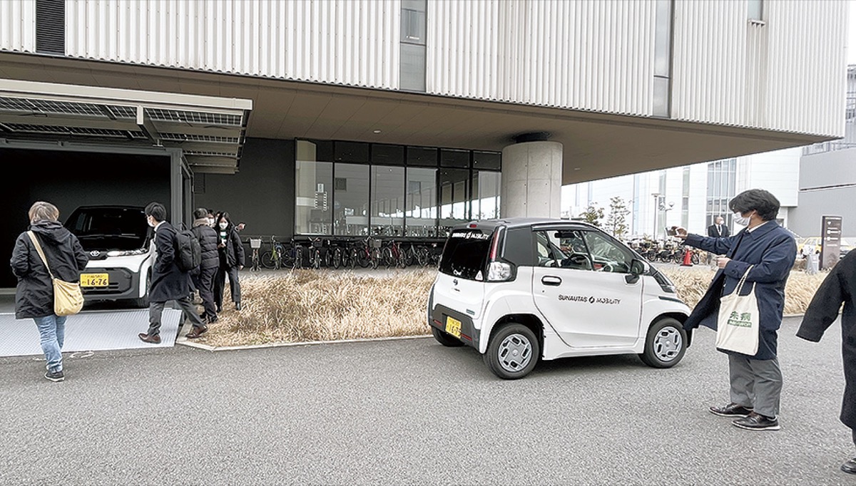 同社が川崎市と委託提携を締結している、環境技術産学公民連携共同研究事業の一環で、電動モビリティのシェアサービスと次世代型充電インフラによる、脱炭素や地域循環を目指した取組み。当日は超小型EVの試乗体験や、給電拠点となるソーラーガレージ(川崎区殿町)の展示が行われた。超小型EVに試乗したのは十数名。「静かで、小回りがきいて乗りやすい」といった声が聞かれた。