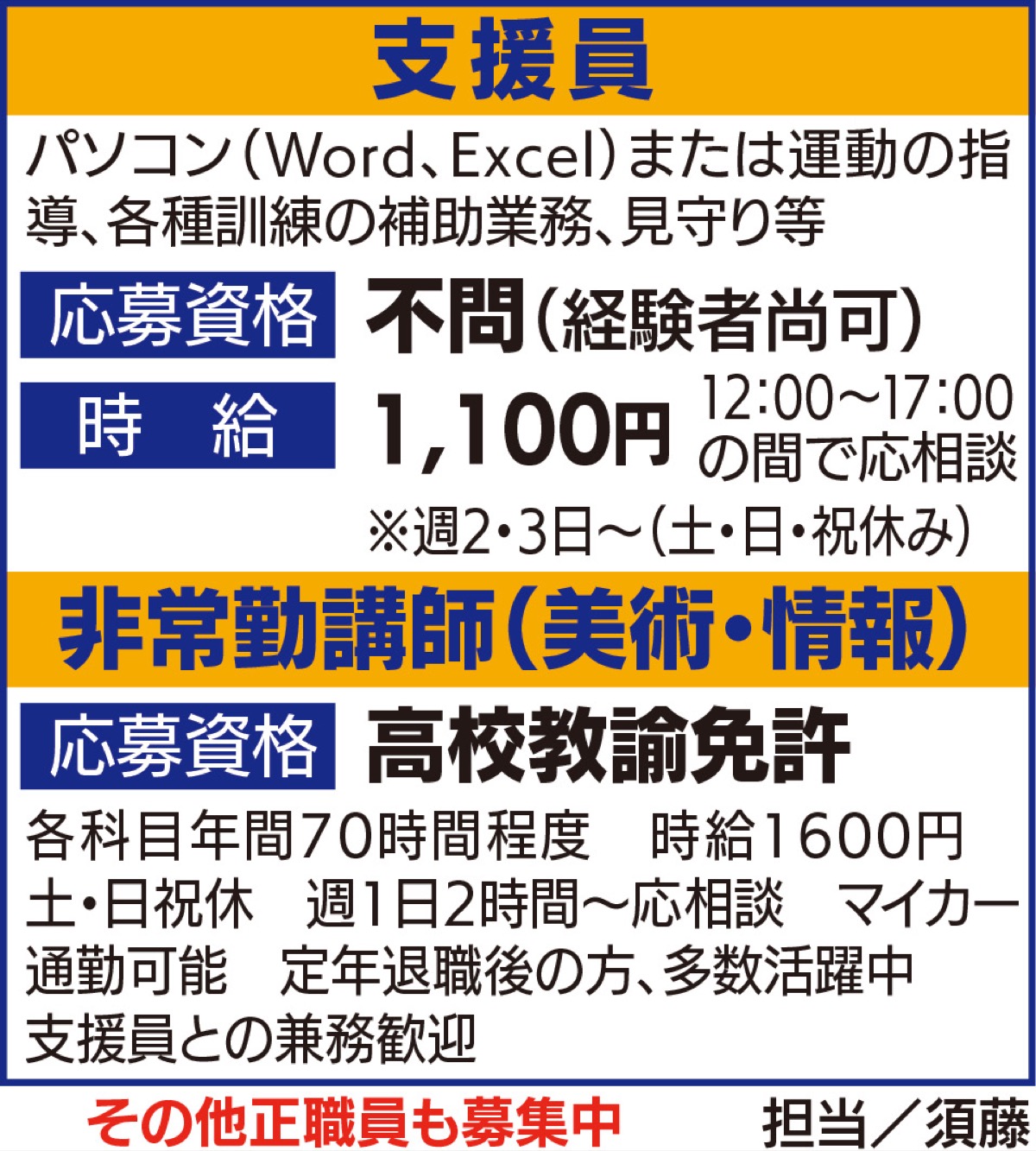 「支援員はサービス業など福祉職以外の経験者も歓迎。教科学習のほか自立訓練や就労移行支援等子どもの成長をサポートするやりがいある仕事です」。まずは気軽に【電話】・メールで問合せを。