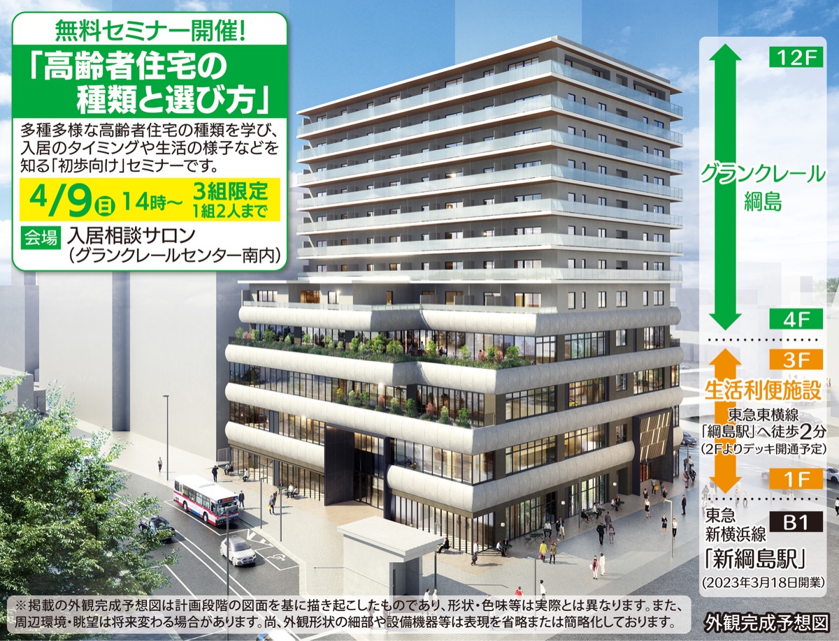 3月18日に開通した東急新横浜線。同時に開業した「新綱島駅」は再開発の中心地でもあり、いま最も注目されている新駅だ。そんな同駅の上層階に11月末、東急不動産HDグループのシニア向け住宅「グランクレール綱島」が誕生する。