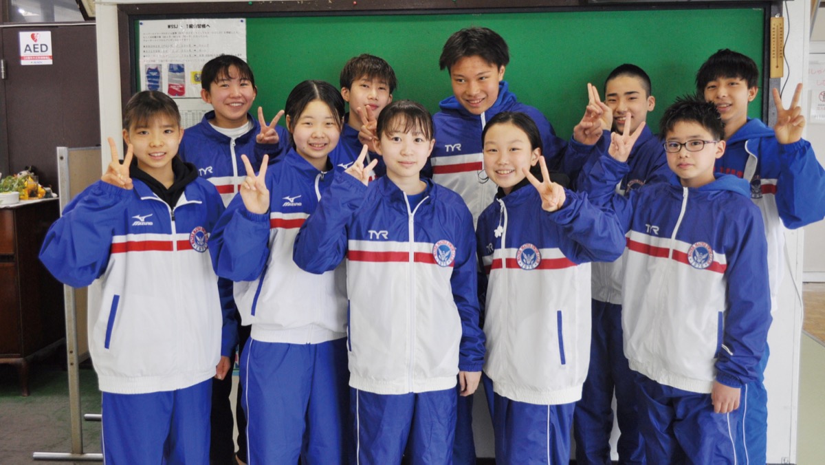 同大会は、年2回開催される全国大会で、公式・公認競技会において、主催の(公財)日本水泳連盟が定める標準記録を突破したか、あるいは同記録の選手のみが出場できる。毎年エントリー選手を輩出している同クラブでも10人が参加するのは、「あまりないこと」だという。メンバーは、男子5人、女子5人で中学生が1人、小学生が9人。