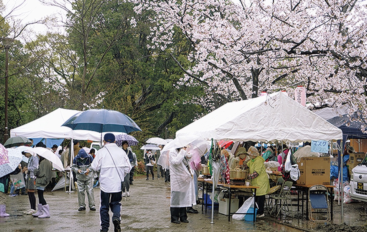 同地区連合自治会の佐藤誠三会長は「桜は咲いているのに、コロナで何もできなかった。桜まつりを待っている人がいて、今日の為に準備してきた人がいる」とまつりへの思いを口にした。「3年間やっていないと、まつりを知らない人も増えてくる。雨が降っているけど満開の桜を楽しんで」とは同地区連合自治会の副会長で同地区社協の中森伸明会長。