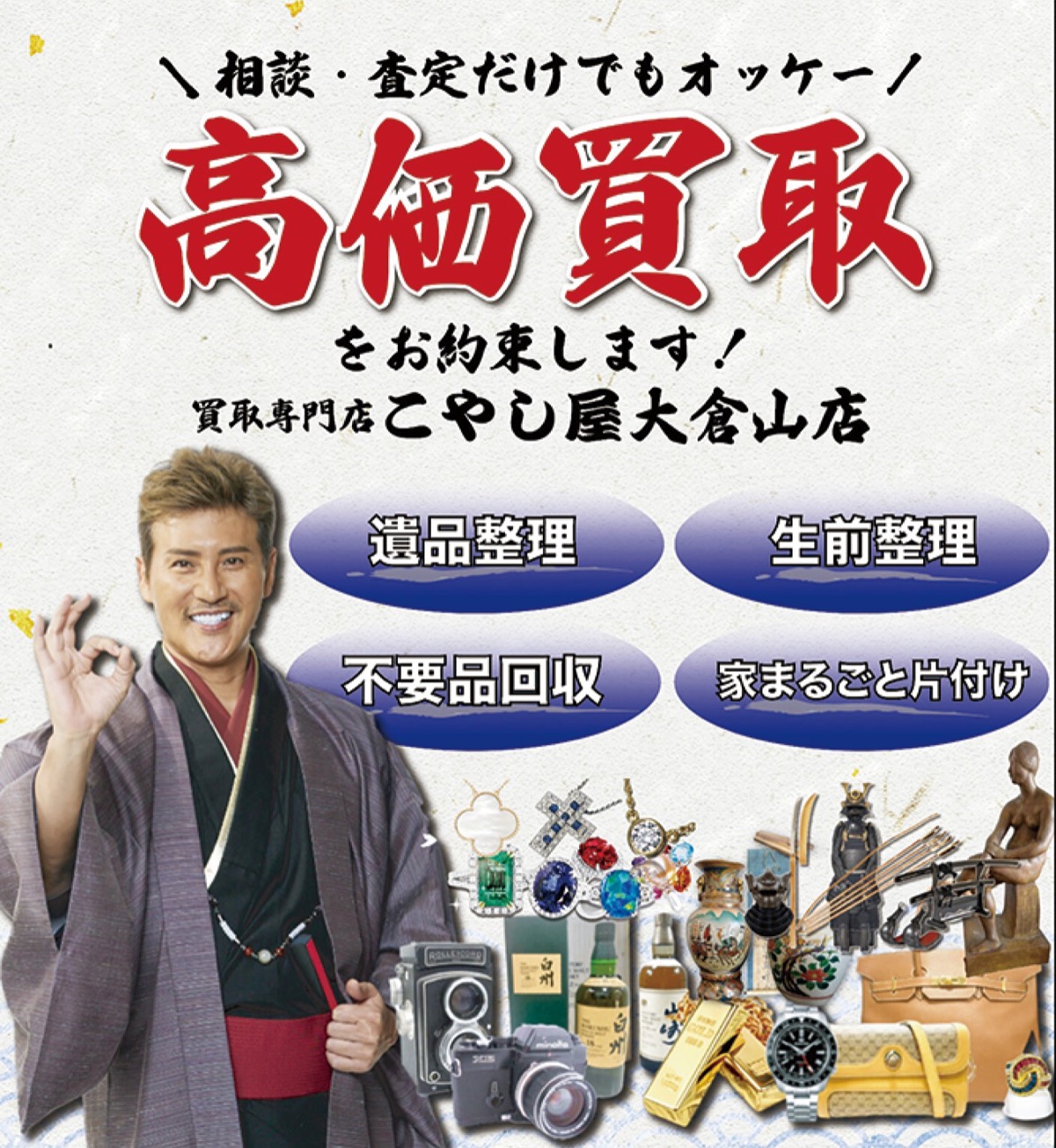 「いろいろな店を回ったけど、ココが高く買い取ってくれた」と話題のこやし屋大倉山店。貴金属の査定にも定評があり、「インゴットや金・プラチナ製品(骨董品、刀剣、商品券、切手・はがき・テレカ、お酒、古銭・記念硬貨、おもちゃ、カメラ、ブランドバッグ・時計、宝石・ジュエリー)は『高価買取保証』で対応します」と同店。壊れたネックレスや、他店で値段がつかないような指輪の宝石も高く評価する。いらなくなった服も買取可能。
