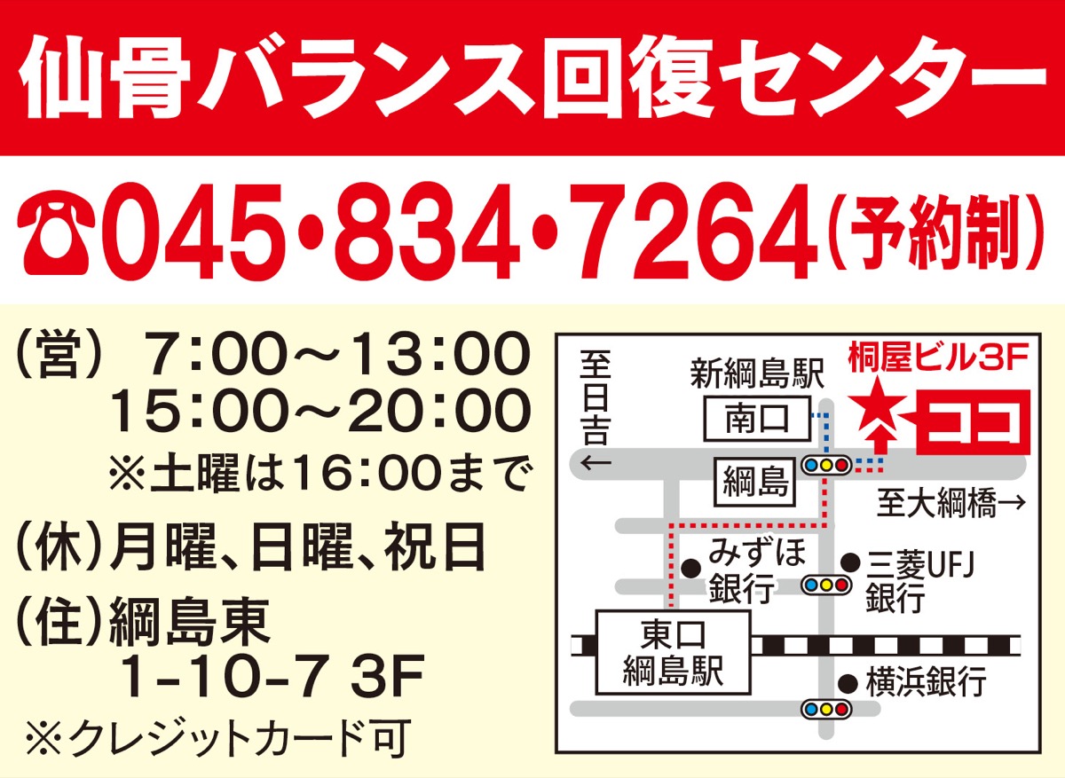仙骨の歪みの影響は不眠、腰痛、肩こり、ヘルニア、坐骨神経痛、脊柱管狭窄症等の症状に繋がることもある。最近は、慢性的な腰痛や坐骨神経痛に悩む人が増加しているが、同院で施術を受けた9割の人が「長年の腰や膝の痛みが軽減し驚くほどよく眠れる」など効果を実感(※効果には個人差有)。身体のメンテナンスに利用する人も。