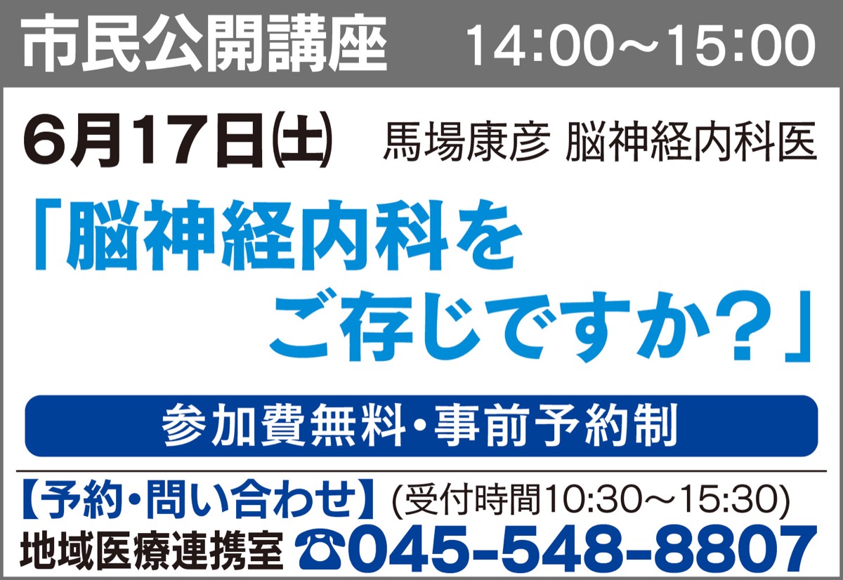 一度は聞いたことがある「脳神経内科」。しかし、「何の病気を診るの?」「どんな時に受診すればよいの?」といった人も少なくないのでは。そんな疑問に神奈川歯科大学附属横浜クリニック特任講師の馬場康彦医師(脳神経内科)が答える市民公開講座が6月17日(土)に開催される。横浜クリニック7階大会議室、午後2時〜3時。参加無料で要事前予約。
