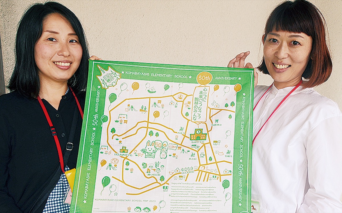 マップ入りバンダナをプレゼントした理由について、同実行委の小泉紗規子副委員長と大倉美津枝さんは「(子どもたちが)見て飽きない、思い出になるものをと思った」と口を揃えた。