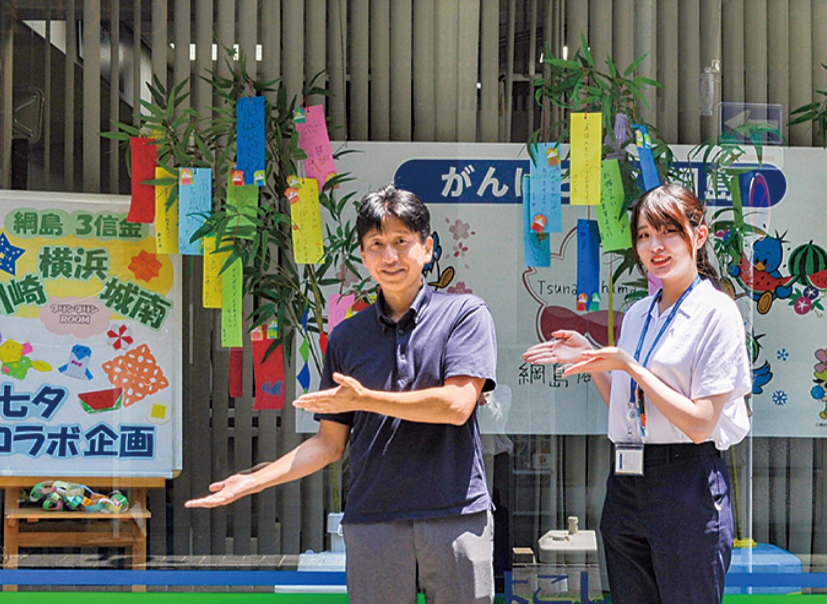 同企画は、コロナ禍で落ち込んでいる地域を明るくしたい、との思いで2021年に始まった。今回、一部の笹は川崎信金利用者からの提供。川崎信金の矢内忠雄副支店長は「地域のつながりを感じた」と話していた。7日には、城南信金とコラボしたトモキッズナーサリーの子どもたちが、笹飾りを見に同店舗を訪れていた。