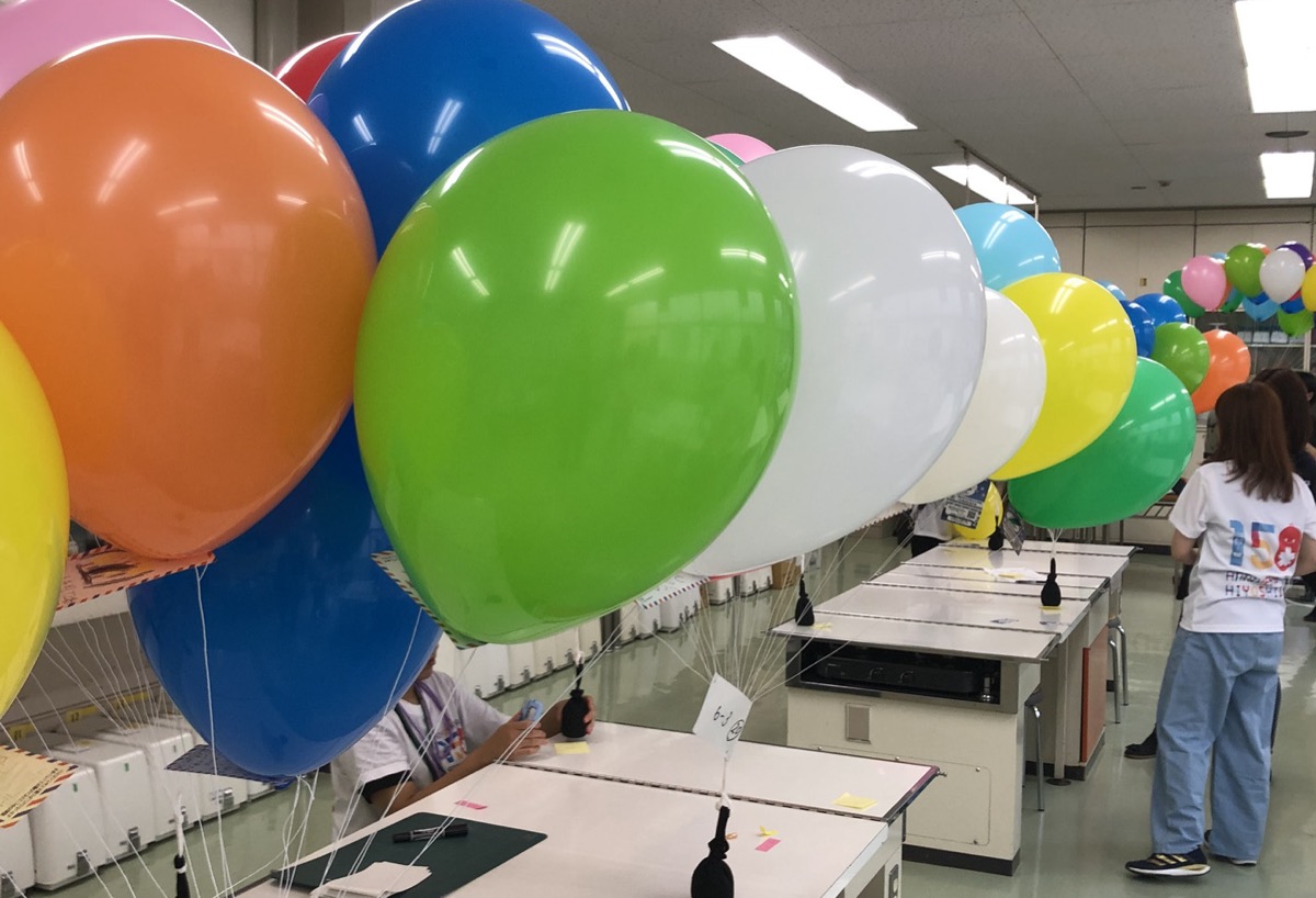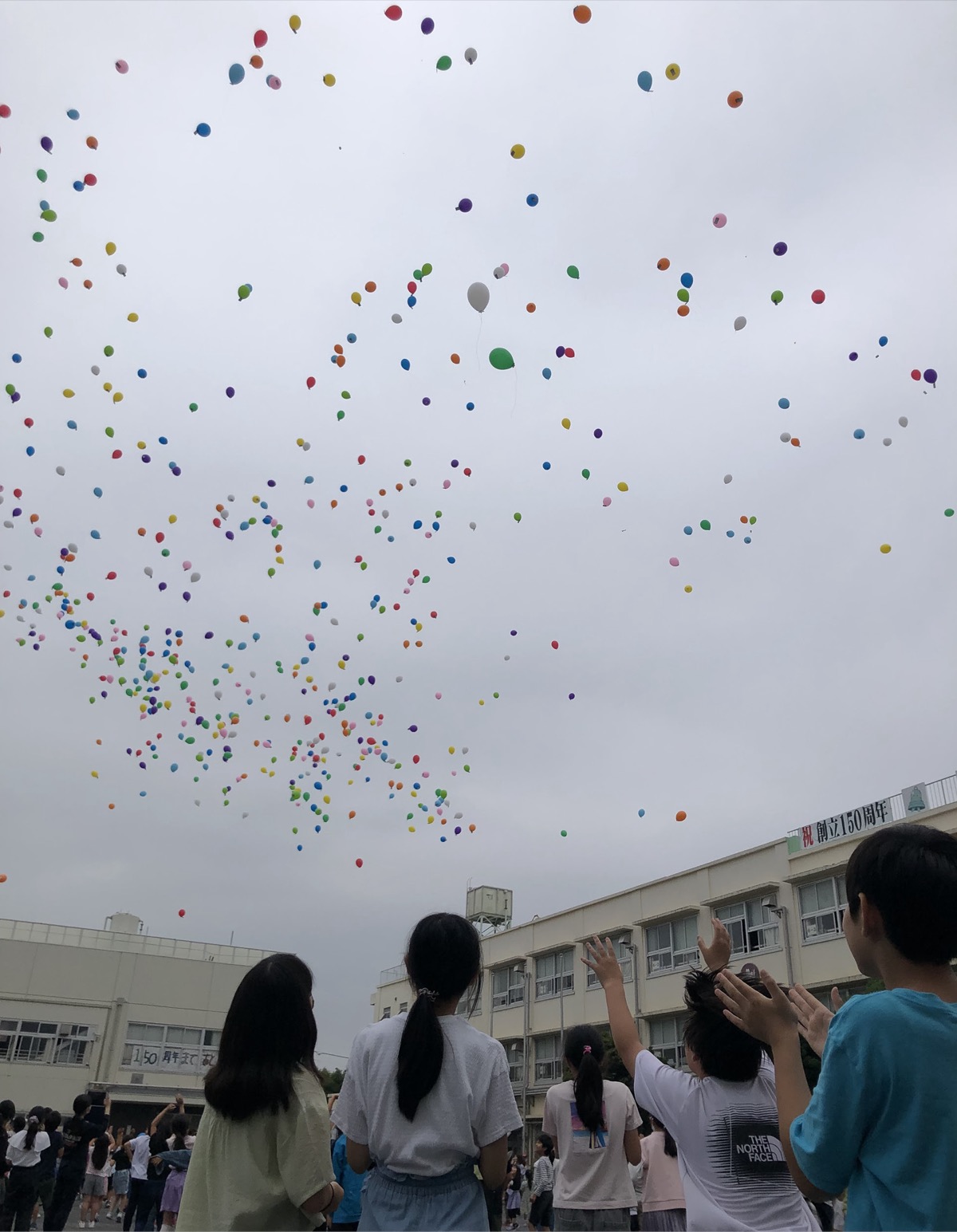 日吉台小学校の創立150周年記念事業の一環で、開校記念日前日の6月23日に同校で行われたバルーンリリース。自然に帰る素材で、コスモスの種が封入され、学校の情報と児童らが描いた「日吉の好きなところ」のカードが付けられた色とりどり約600個のバルーンは、合図とともに一斉に大空に放たれた。