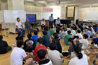 今回の授業では、学校から相談のあった同小学校地域連携コーディネーターの佐藤建二さんが、つながりのある西方寺の伊藤仁海住職のほか、2004年に『新羽史』を編集した長谷川武明さん、大倉精神文化研究所の平井誠二さん、地元住民で同コーディネーターの小山正博さんら地元の名士らとともに講師となり、新羽の歴史、寺の歴史、昔の暮らしや生活、学校の生い立ち、地名の由来などを座談会方式で児童らに講話した。