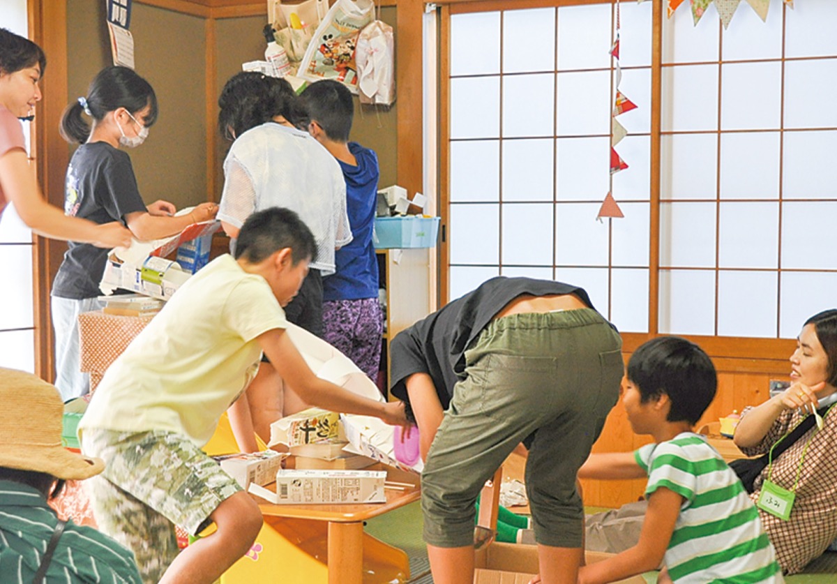 学校に行きづらい子とその親のための居場所「SOW」。篠原町の地域カフェ「cocoしのはら」で、毎週火曜日に親子の場として開かれている。7月25日には、牛乳パックで作った滑り台でスーパーボールすくいを企画。夏休み期間中の地域の子どもたちも集まり、盛り上がっていた。
