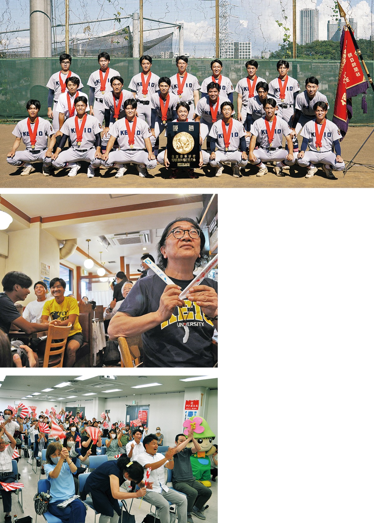 慶應義塾高等学校野球部は8月23日、第105回全国高等学校野球選手権記念大会(主催/朝日新聞社、日本高等学校野球連盟)の決勝戦で、仙台育英学園高等学校に8-2で勝利を収め日本一になった。仙台育英とは、春のセンバツでも対戦し、タイブレークの末1-2で敗れている。地域の人らは飲食店や港北区役所などで、107年ぶりの全国制覇を掛けた試合を応援した。