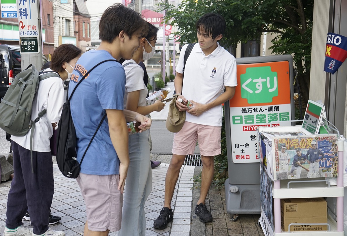 日吉に戻ってきた慶応ナインは地元の様子を見て喜びを口にした。山本海副将(3年)は「ひようらの横断幕を見て、歓迎してくれていることを感じました」と目を細めていた。「ニュースで日吉の人たちが応援してくださっている方や、自分たちの帰りを待ってくださっている方がいるのを見て、日吉という地で慶応は根付いていて地元に愛されているチームで良かった」と笑顔で話したのは、決勝戦で適時打を放った八木陽選手(3年)。仲尾台中(中区)、横浜市金沢区のシニア出身の笠井達弥選手(3年)は「張り紙がたくさんあり、これだけの人に応援されていて、とても嬉しいです。武蔵家がセールをしているそうなので、食べに行きたいです」、港南台第一中(港南区)、同シニア出身の加賀城祐志選手(2年)も「地域の人の応援がとても嬉しかったです。ありがとうございます」と感謝を述べた。