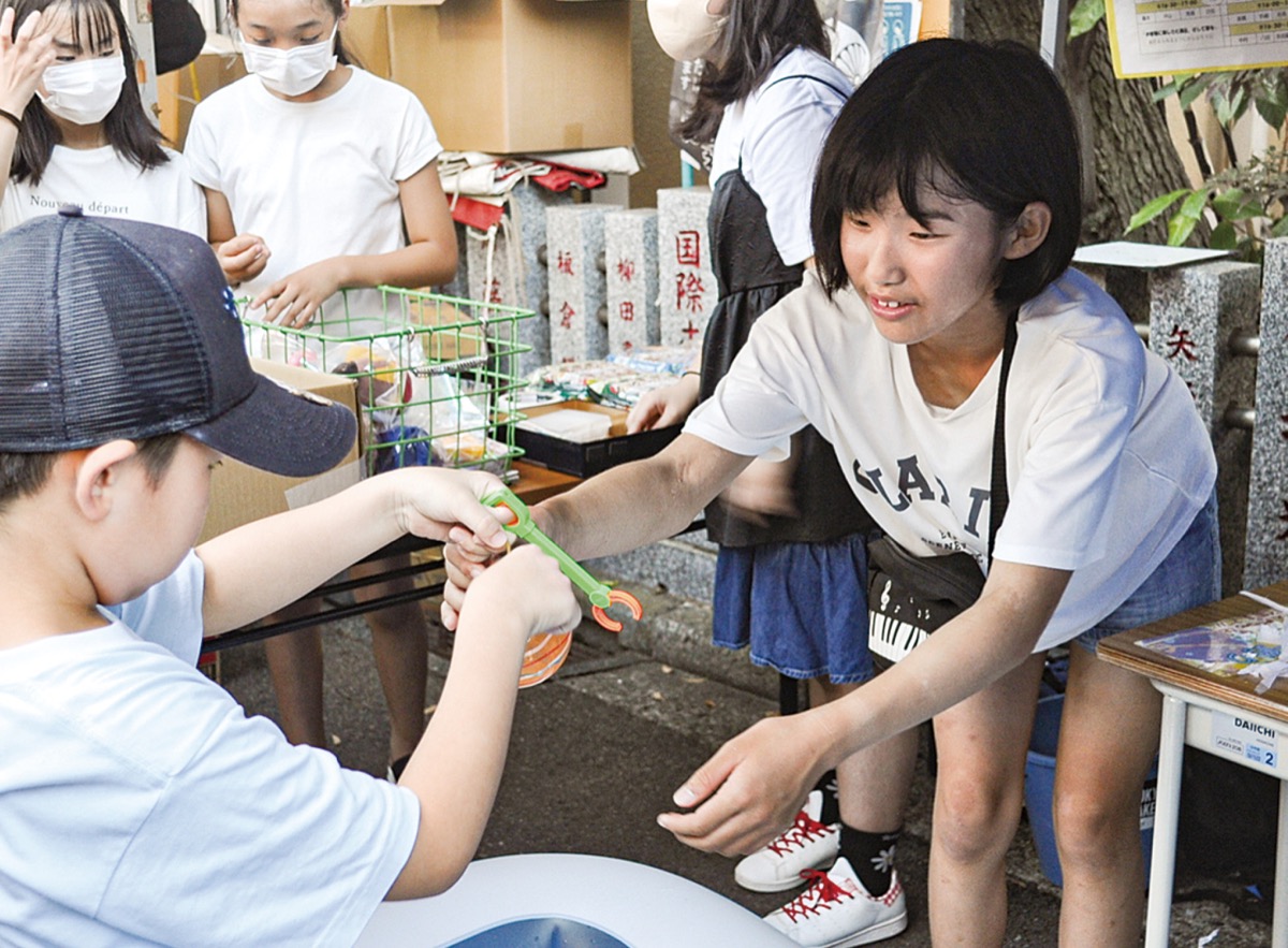 昨年より規模を拡大し、9月16日、17日に開催された菊名神社例大祭の夜店に、子どもたちが経営する屋台が出された。出店したのは、菊名小学校(松瀨歩校長)5年2組の児童。店先には列ができ、祭りの盛り上げに一役買っていた。