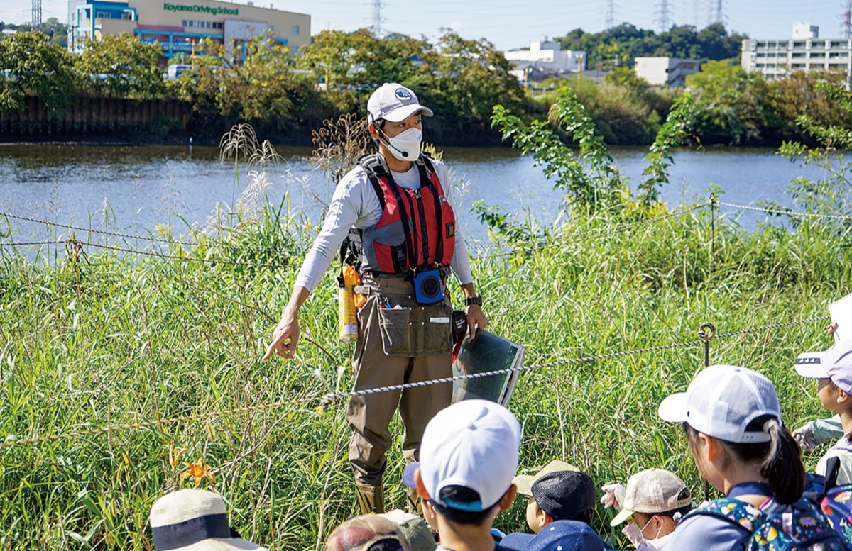 綱島東小学校3年生は10月13日、出前授業「港北水と緑の学校」で鶴見川の魅力を学んだ。この授業は、港北区と、NPO法人鶴見川流域ネットワーキングが協力して実施したもの。同法人のスタッフらが講師となり、「生まれ育った川の魅力を知るきっかけになれば」として、生きもの観察、投網見学、魚とりなどを行った。