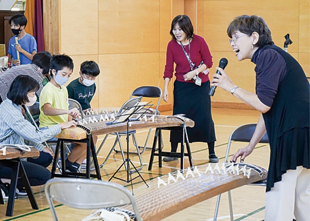 児童の中には、「音色がきれい」「箏を体験している時、どの糸を引くのかわからなくなった」という声も。孫が同小に通っているという同会の久保乃理子さんは、「子どもたちが一生懸命に聞いて、体験して、嬉しい」と目を細めた。
