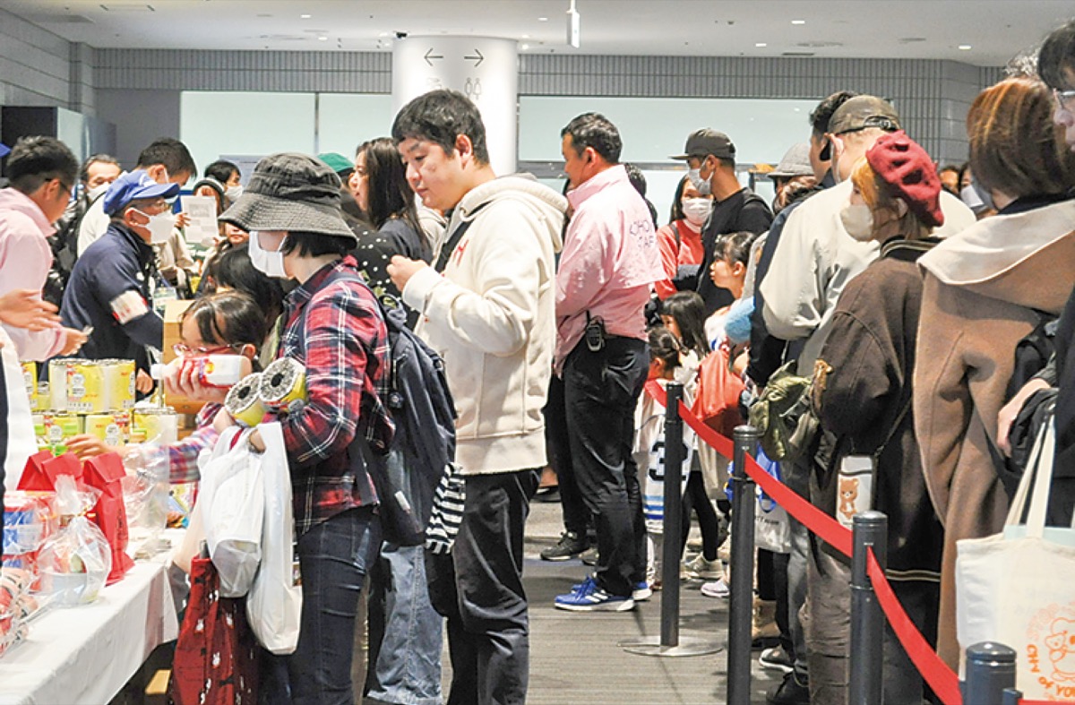 1階と駐車場のふれあいまつり会場では、飲食コーナーやスポーツ体験、ゲームなどのブースが会場を賑わせた。抽選会場には早い時間帯から列ができ、ブースを回っては賞品を求めて抽選に並ぶ人の姿もあった。2階の秋のヨコアリくんまつり会場では、鉄道関連ブースの「子ども制服体験」や、「ふれあい水族館」など、子ども向けのブースも人気を見せていた。大倉山から来ていた子ども連れの夫婦は、「子どもが楽しめる体験も多く、娘たちも嬉しそう。毎年来ているが、今年はブースが多く、まわりやすい会場構成で良かった」と話していた。