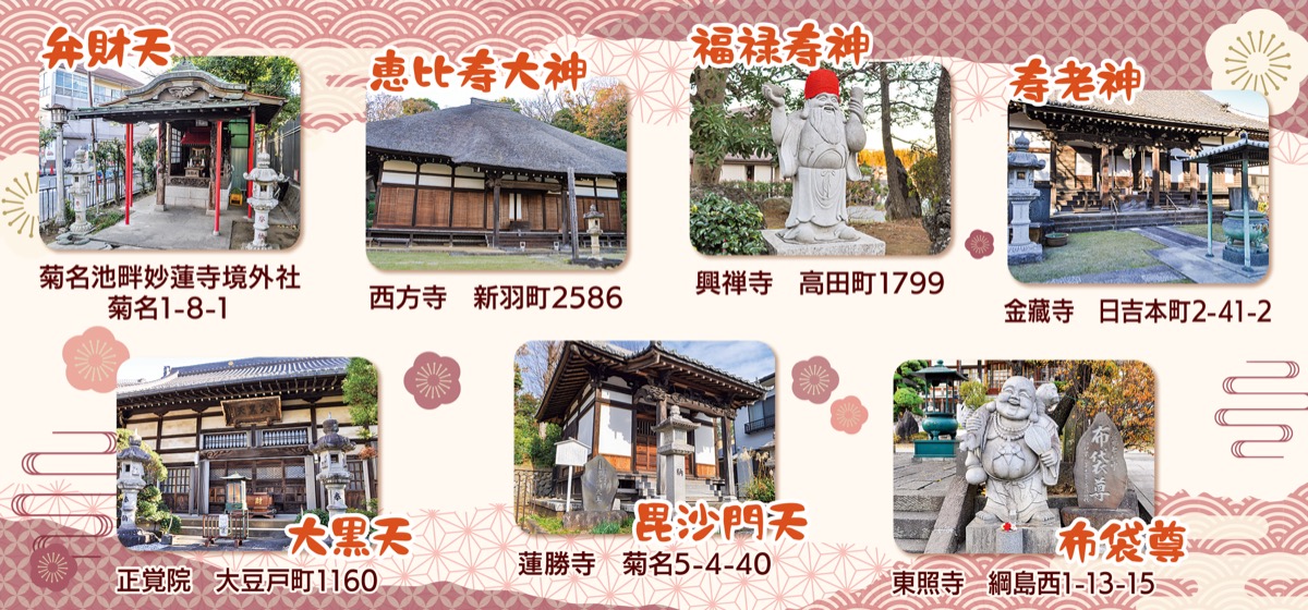 七つの災難を除き、七つの幸福を授ける「福徳の神」として信仰される七福神。その歴史は室町時代末期まで遡るといわれ、全国各地で祀られている。港北区内でも、七カ所の由緒ある寺院に一柱ずつ祀られ、「横浜七福神」の名で地域住民に親しまれている。
