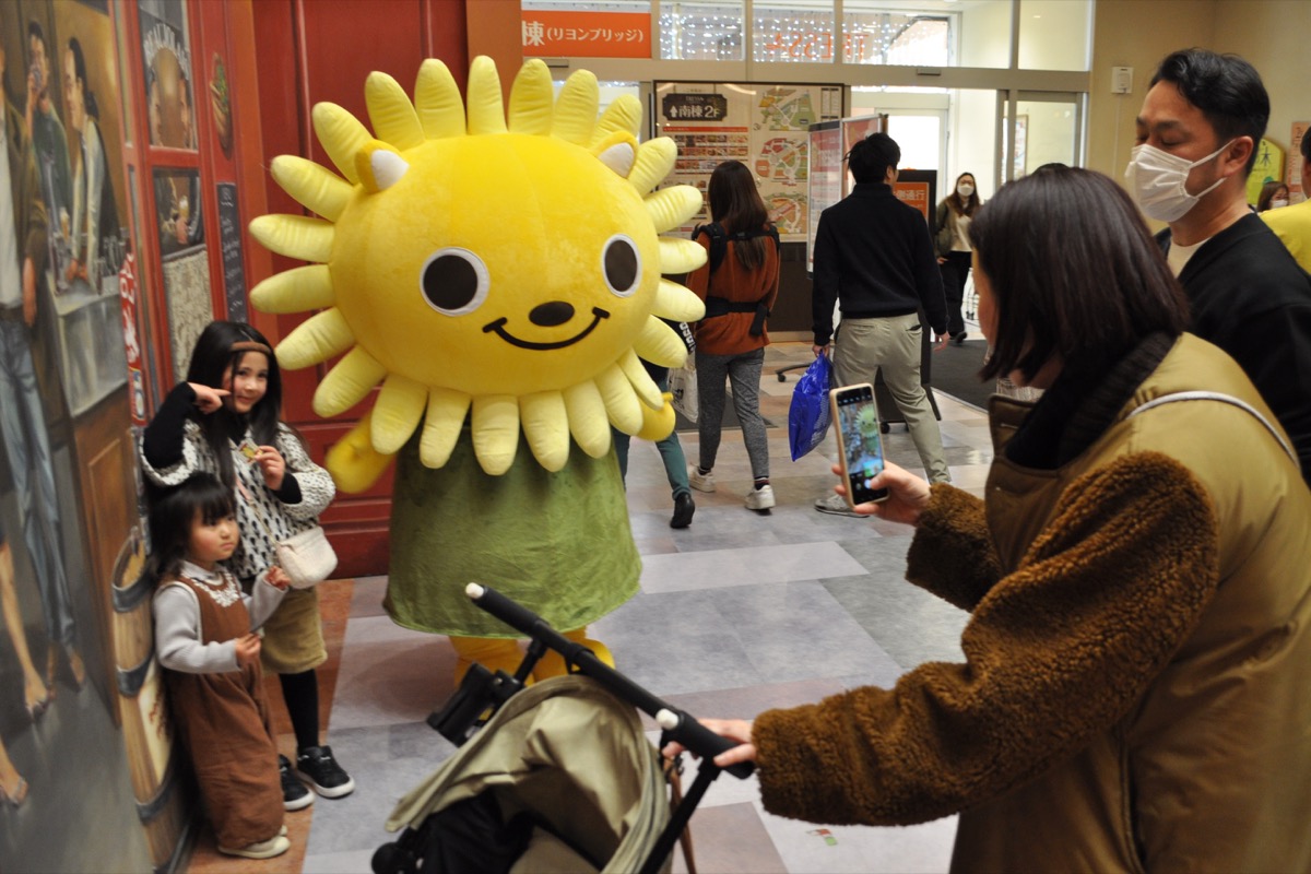 日頃は同施設や区内の大イベント時に登場することが多い「とれおん」。この日は同施設の北棟2階リヨン広場に突然現れると、開催中だった北陸マルシェやクラフトワークショップなどのイベント会場付近を練り歩き、子どもたちの喝さいを浴びて、拍手や記念撮影に“笑顔で”応じる姿が見られた。