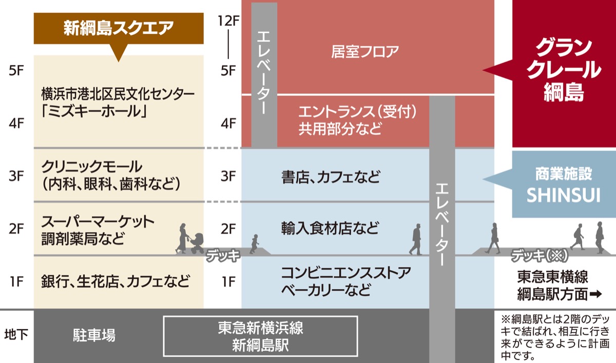 同住宅の下層階には書店やカフェ、ベーカリーなどが入居する商業フロアが15日にグランドオープン。初日から多くの来場者があり、賑わいを見せている。隣接の複合施設「新綱島スクエア」にはスーパーやクリニックも開業しており、街全体が共用部のような感覚で日常生活を営むことができる。