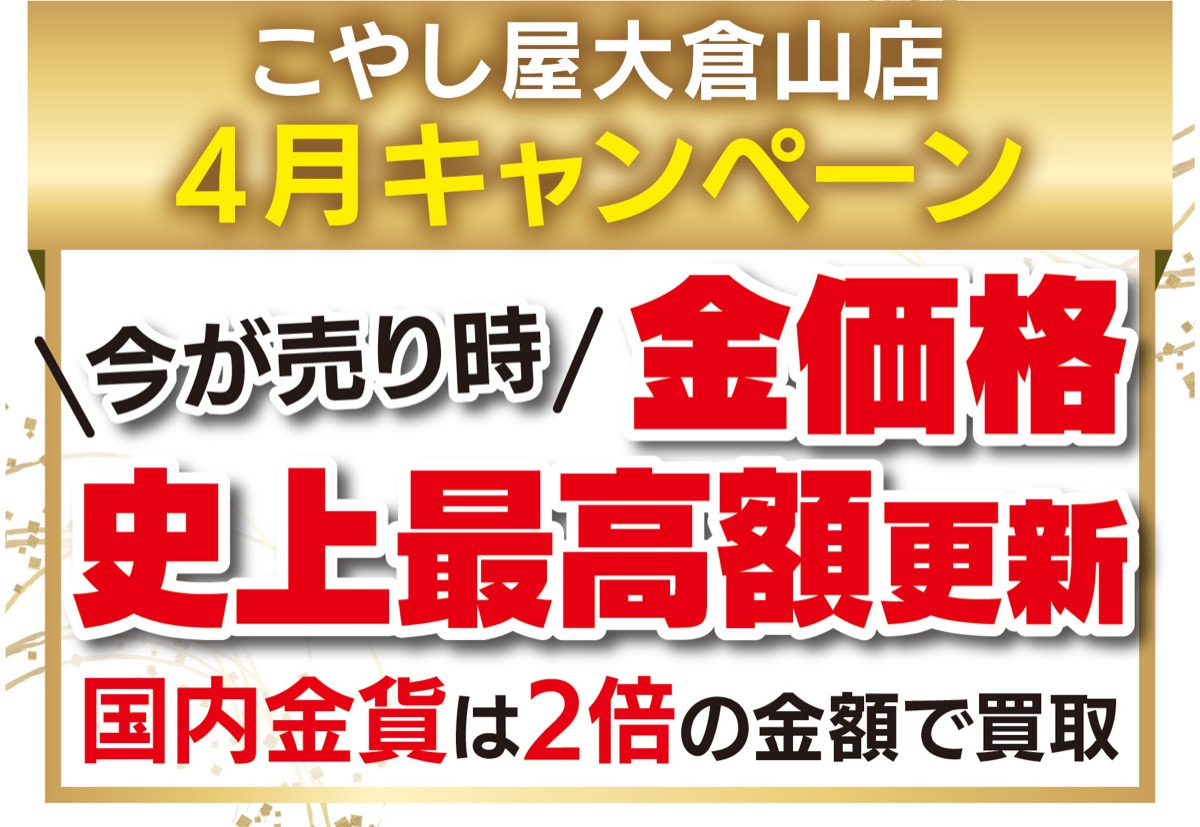 金価格が史上最高値を更新し、金製品の買取価格も高騰している。金製品を売るなら、港北区大倉山にある買取店「こやし屋大倉山店」へ。