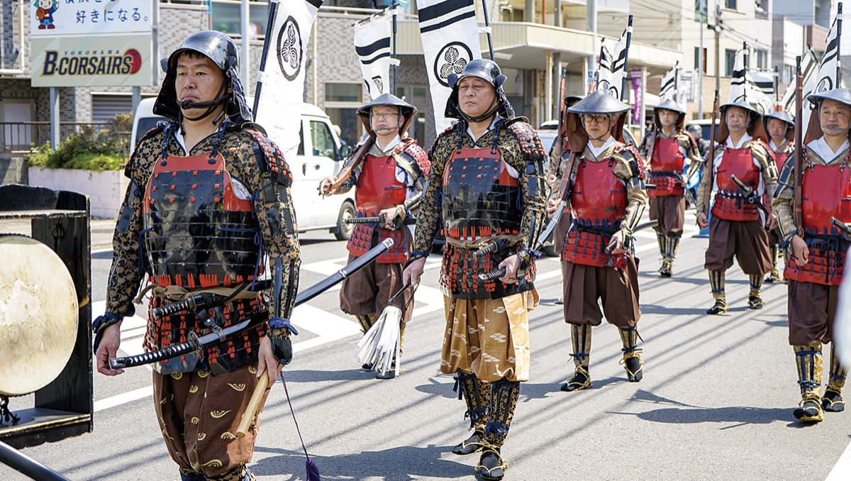 毎年恒例となっていたが、コロナ禍の中止を経て、昨年は武者行列の区間を雲松院から金剛寺までと、規模を縮小して実施した。今年は、三会寺から県道12号横浜上麻生線を経由し、小机城址市民の森まで、5年ぶりに例年通りの行程に戻して練り歩いた。武者に扮したのは約70人。鉄砲隊による迫力ある発砲演技に、目を輝かせる来場者の姿も。パレードには、子ども神輿やお囃子、近隣小学校のマーチングバンド、消防音楽隊なども参加し、行列が行進する姿を一目見ようと沿道には多くの人が集まった。