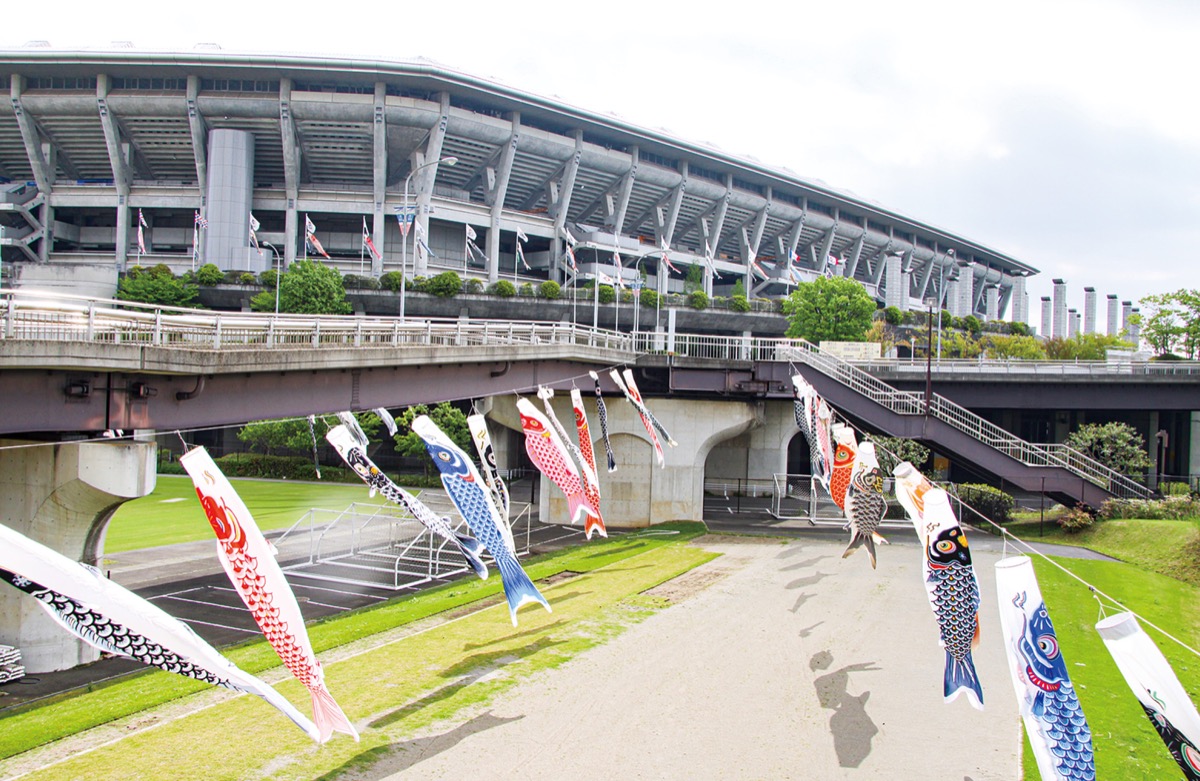 2007年から続いている同公園の「こいのぼりプロジェクト」。各家庭や近隣保育園等から寄贈された約200匹のこいのぼりが4月26日(金)から5月7日(火)のゴールデンウィーク期間中、公園内に掲揚される。「日産スタジアムでは、四季折々、来場者の方が楽しんでいただけるイベントを実施しております。この時期は、ご家庭で役目を終えたこいのぼりたちが青空に空高く舞い上がります」と担当者。