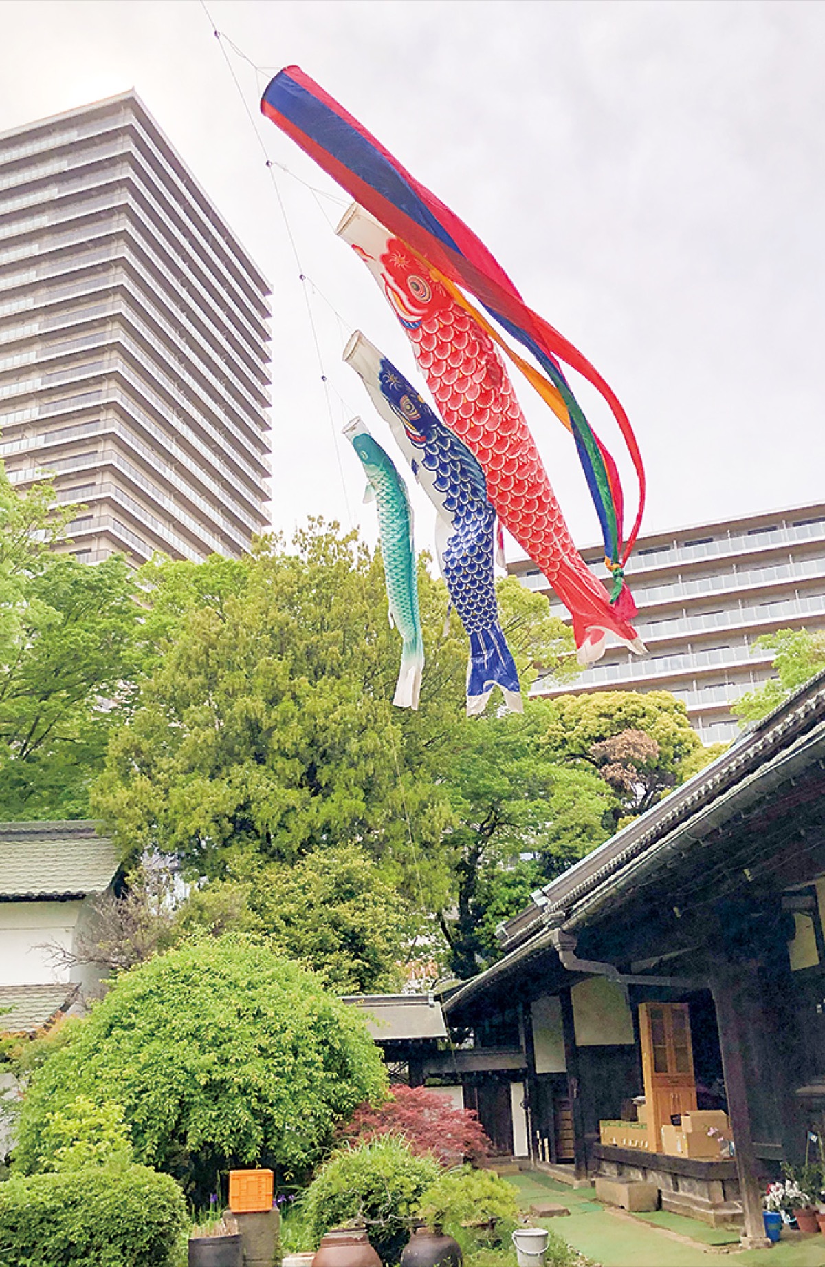 発展著しい新綱島にある古民家で、主屋が市の歴史的建造物に認定された池谷家(いけのやけ)住宅にGW期間中、鯉のぼりが掲げられた=写真(4月26日撮影)。現当主の池谷道義さんが「歴史的な伝統文化を残しておきたい」という思いで続けるこの時期の風物詩。12日頃まで、雨天・荒天を除き朝から日没まで掲揚される予定。見学は敷地内にある「日月桃の碑」の手前まで立入り可能。入口の張り紙で確認を。