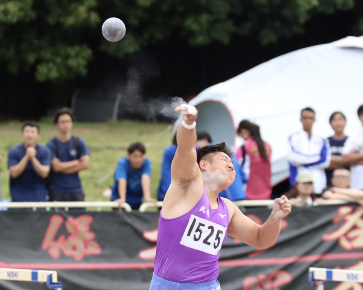 橋本さんは、最終6回目に自己記録(14m84)を1年ぶりに塗り替える15m03を投げ、逆転で「Ⅴ2」を決めた。「右手を最後まで出し切ることを意識した」と会心の一投を振り返る橋本さん。昨年逃したインハイ決勝の舞台へ立つため、技術に磨きをかける。