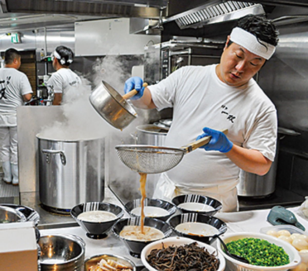 今年30周年を迎えた新横浜ラーメン博物館にこのほど、博多ラーメンの名店「博多一双」が開店した。兄・山田晶仁さんと弟・章仁さんの兄弟が2012年に創業し、現在福岡市内に3店舗を展開。豚骨、麺、チャーシュー、醤油などの食材も全て地元で仕入れるなど地元福岡にこだわり続けた店だ。代名詞となる『豚骨カプチーノ』とは、どんぶり一面に浮かぶ泡を表現したもの。泡のマイルドさと豚骨が持つ力強さが同居したスープが完成した。