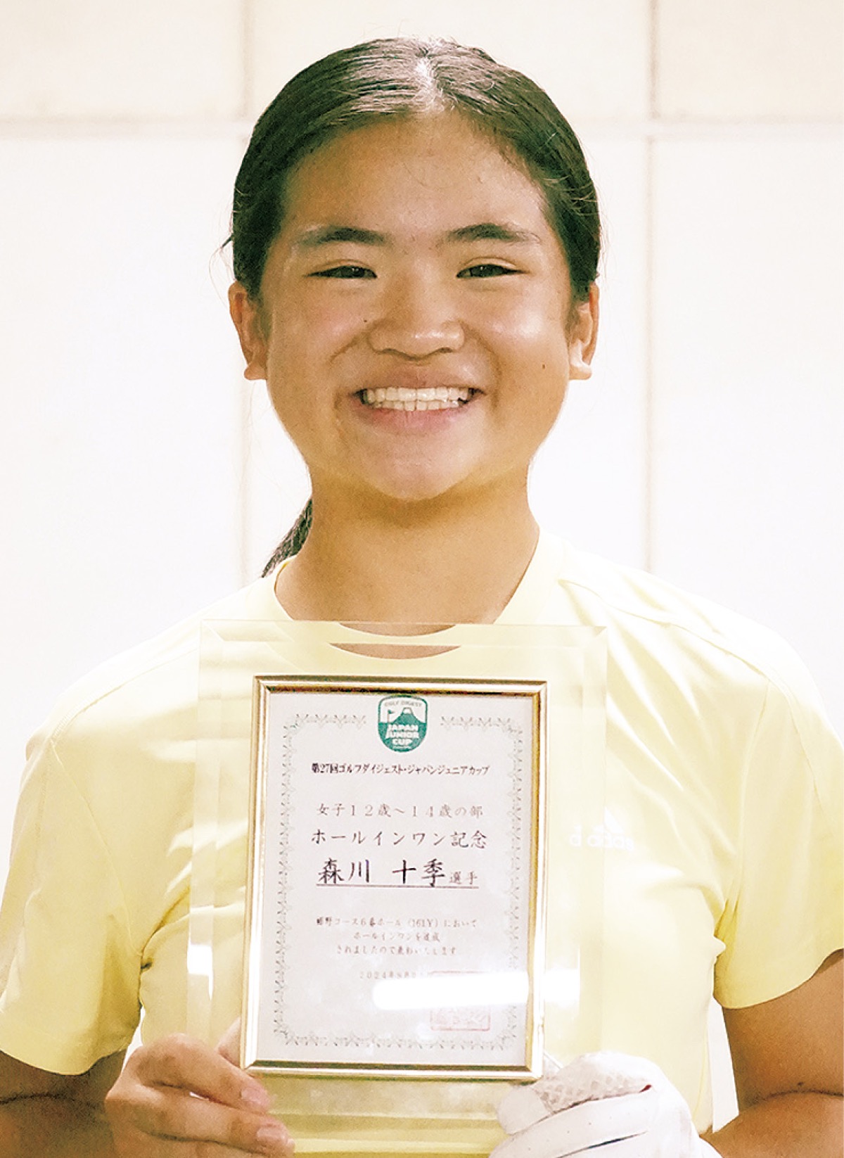 6月は関東中学校ゴルフ選手権・決勝大会に出場。8月に開催された2024ゴルフダイジェスト・ジャパンジュニアカップ(12〜14歳女子の部)では、ホールインワンを達成した。「狙っていたけど、まさか入るとは思わなかった」と自身初の記録を振り返る。