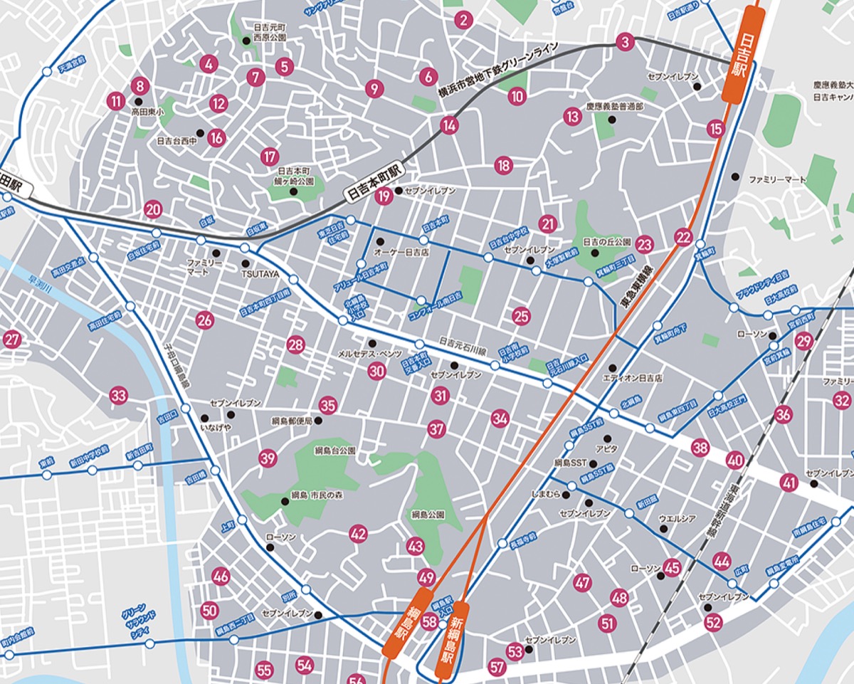 同実証運行はワゴンタイプ車両1台で実施。乗務員含めて11人乗りで、車いす用リフトが装備されている。時間帯は午前9時30分から午後4時30分まで。予約は、アプリ「mobi Community Mobility」または電話(【電話】050・2018・0107、運行時間と同じ営業時間)で、即時予約のみ。大人500円、子ども250円(幼児は同伴者1人につき2人まで無料)、横浜市の敬老特別乗車証(敬老パス)の対象外。交通系ICカード・事前登録したクレジットカード・PayPayで支払う。状況によっては相乗りになる場合も。乗降場所は58カ所(上の表参照)。既設のバス停や安全に乗降できない箇所を避けつつ、エリア内を満遍なく網羅できるように選ばれている。