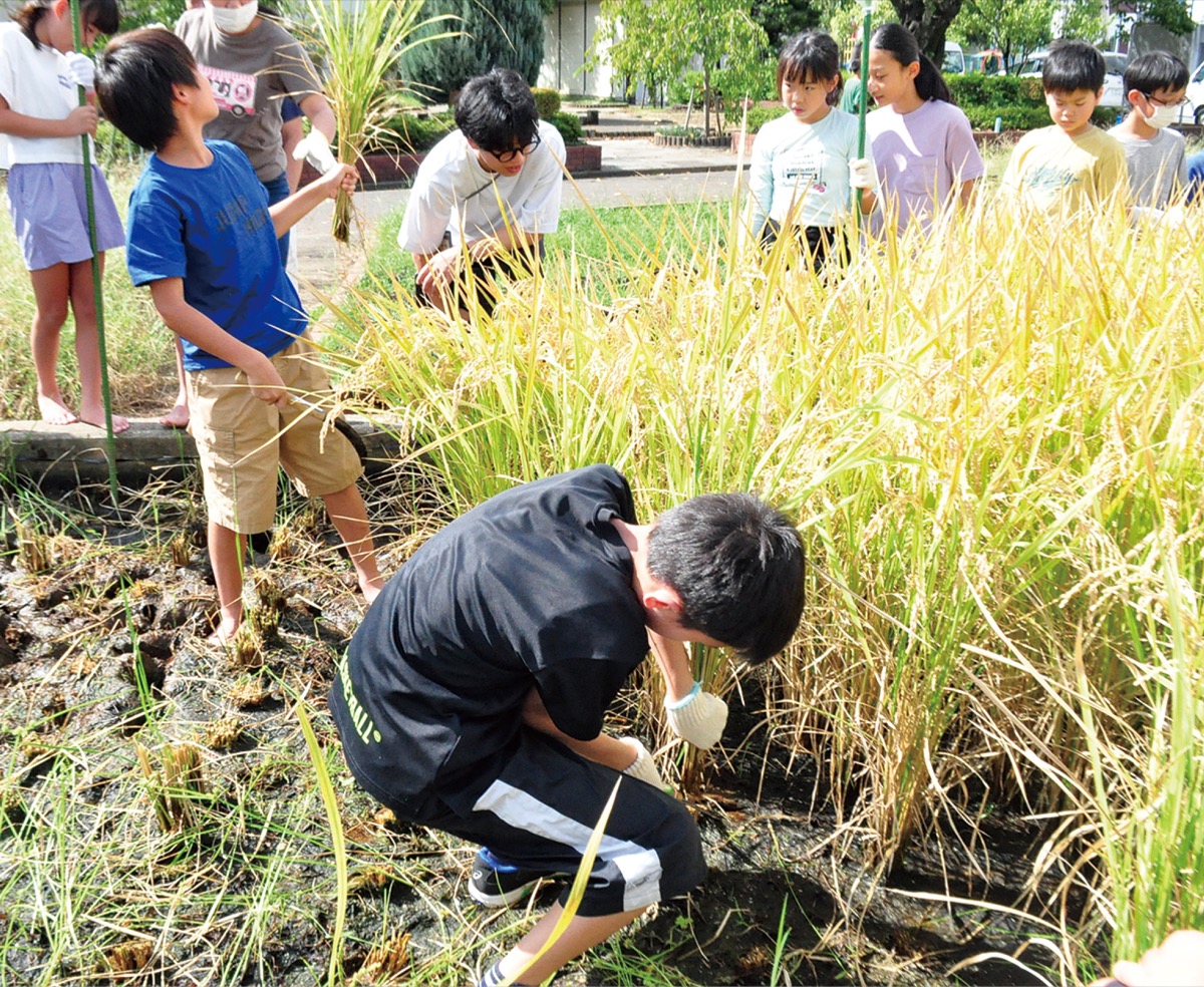 当日、稲刈りを行った児童らからは、「鎌をうまく扱えた」「たくさん刈り取れた」という声とともに、「足がねちょねちょして気持ち悪い」といった悲鳴も。白井優さん(11)は「テレビや写真では見たことがあったが、稲の実物を見るのは初めて。心を込めて刈ったので、食べる時が今から楽しみ」と感想を話した。担任の田屋佑樹教諭は「児童には、できるだけたくさんの地域の方、プロの方に触れてもらいたい。企画を支援してくださるたくさんの方々に感謝します」と話す。