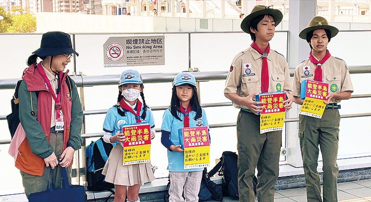 ボーイスカウト横浜第8団(中島一郎団委員長)は11月4日、新横浜駅前で能登半島大雨災害義援金の募金活動を実施した=写真。