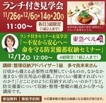 入居者と同じランチやセミナー付きの見学会も開催=表。事前予約制なので、下記まで申込を。