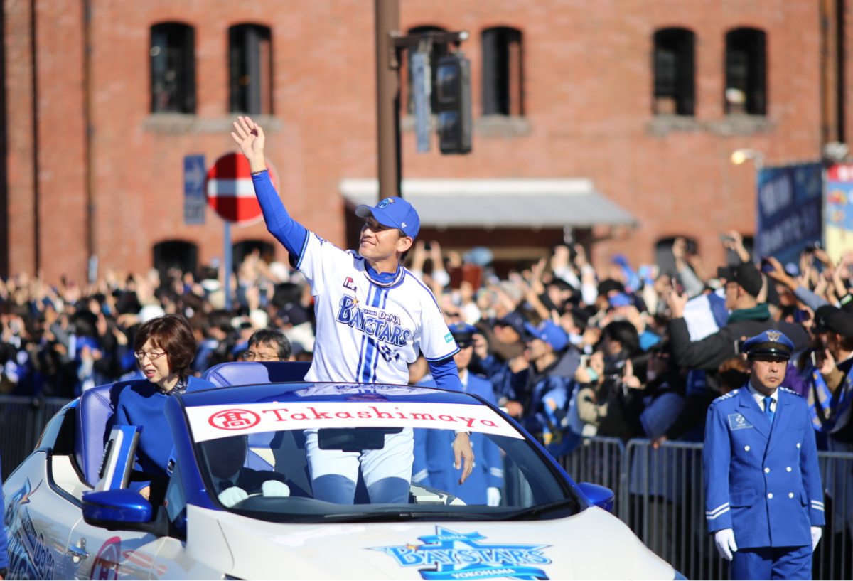 三浦大輔監督や選手、コーチらを乗せたパレード用のオープンカーと「横浜日本一」の文字とともにラッピングされた3台のオープンバスは、多くのファンが見守る中、午前10時30分に横浜ハンマーヘッドを出発。横浜スタジアムそばの日本大通りまでの約1.5Kmを1時間かけて進んだ。