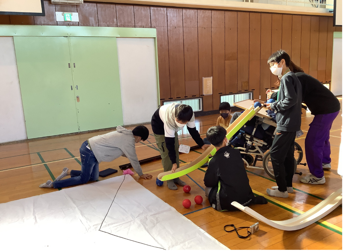 隣接する特別支援学校ともボッチャで交流した。地域の人を招いてのイベントも行われる予定。