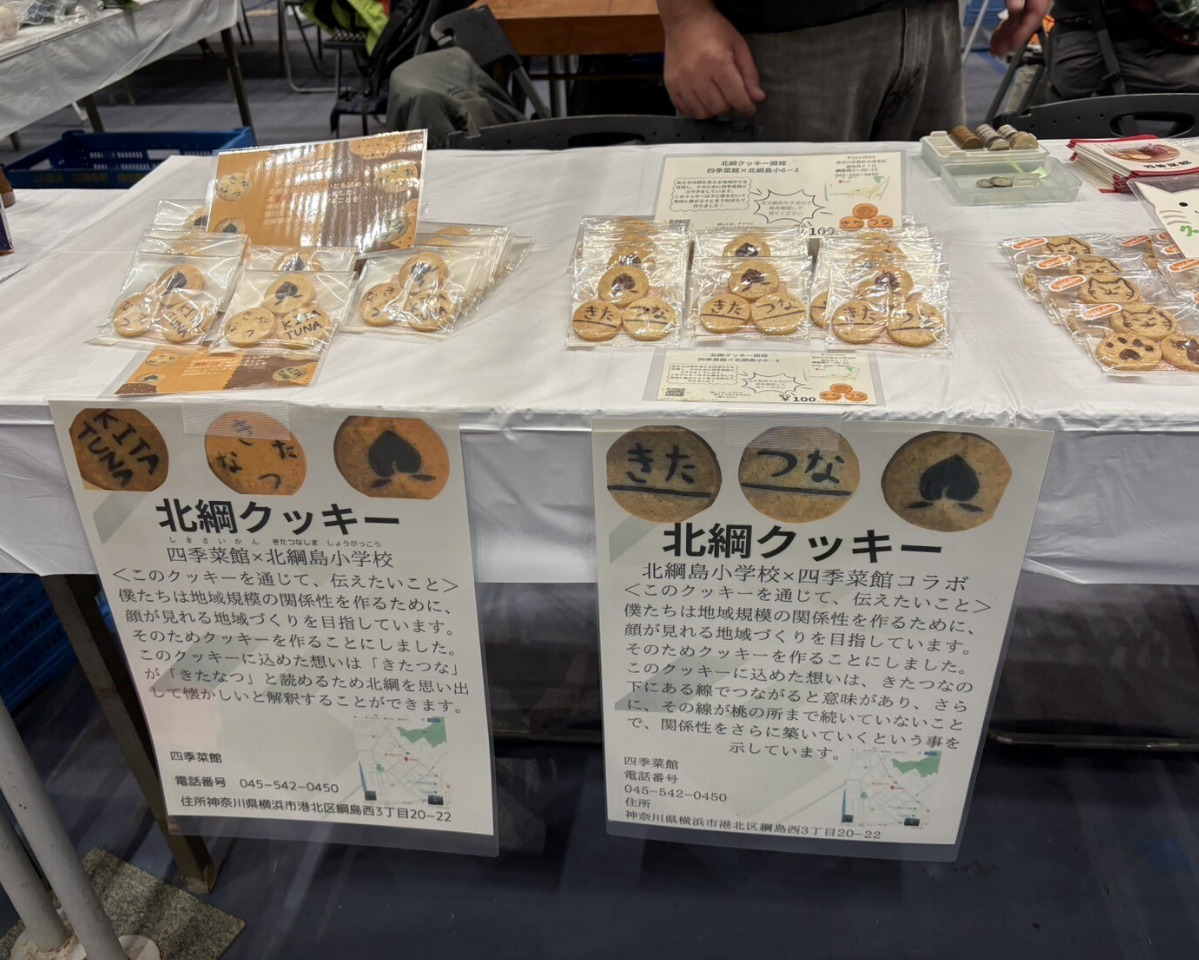 2組は、自主製品の製造・販売などを行う四季菜館(綱島西)の協力を得ながら「北綱クッキー」を開発した。下線で「つながり」を表現、読み方によって、「きたつな」「きたなつ(北綱懐かしい)」になるようにデザインするなど工夫されている。値段設定を行い商品化したクッキーは、11月のふるさと港北ふれあいまつり等で販売した。