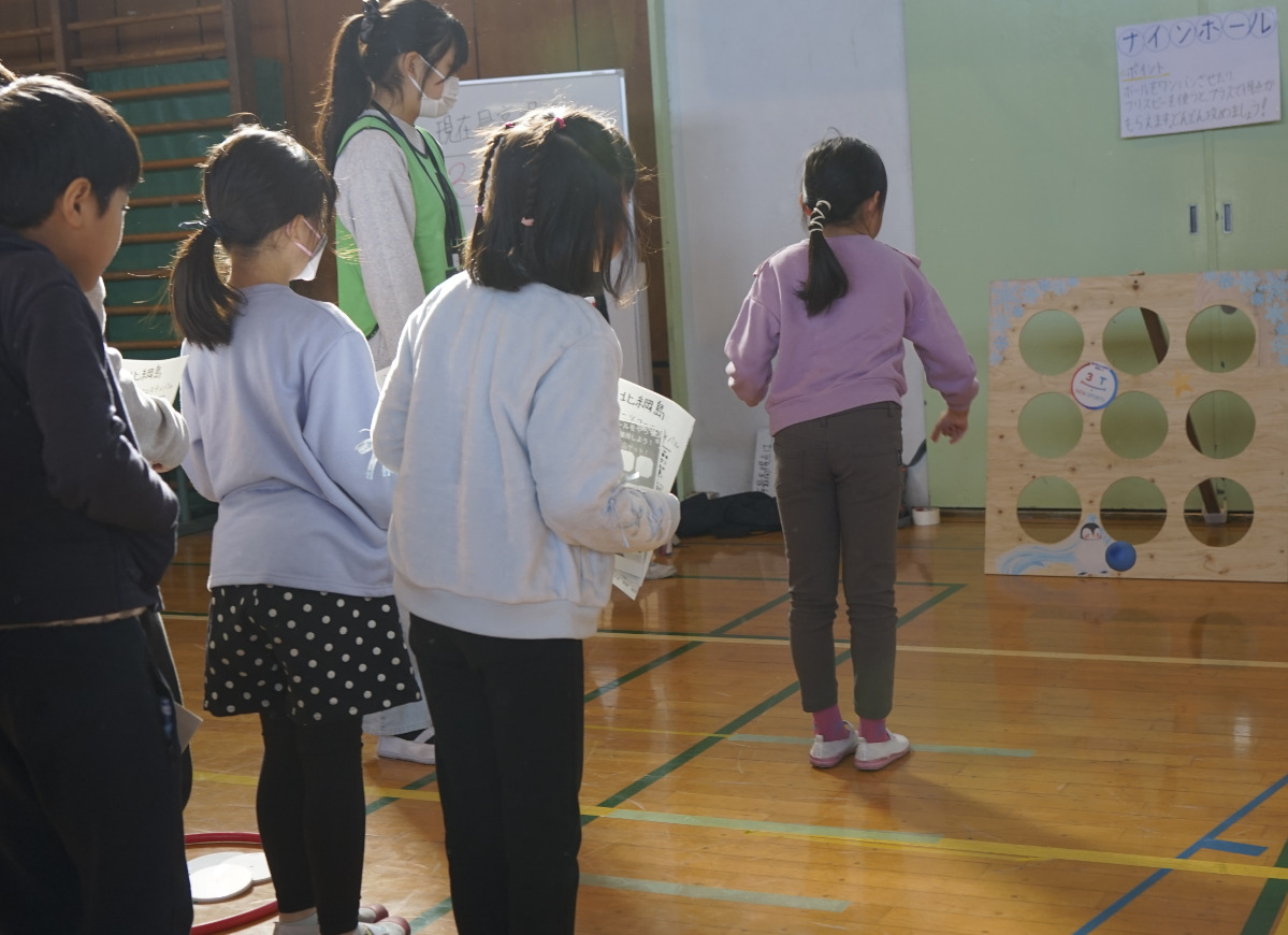 3組は12月11日に、「Newスポーツフェスティバル」を企画して開催。他学級や地域の人を招いて行われた。誰もが楽しめると言われている「ニュースポーツ」の種目であるナインゴール(9つの的を射抜く競技)を元に、オリジナルの競技を編み出した。ルールなどは、港北スポーツセンターの職員がサポート。児童らは的のデザインも考え、庭の設計などを行う(株)スコップ(都筑区)が制作した。