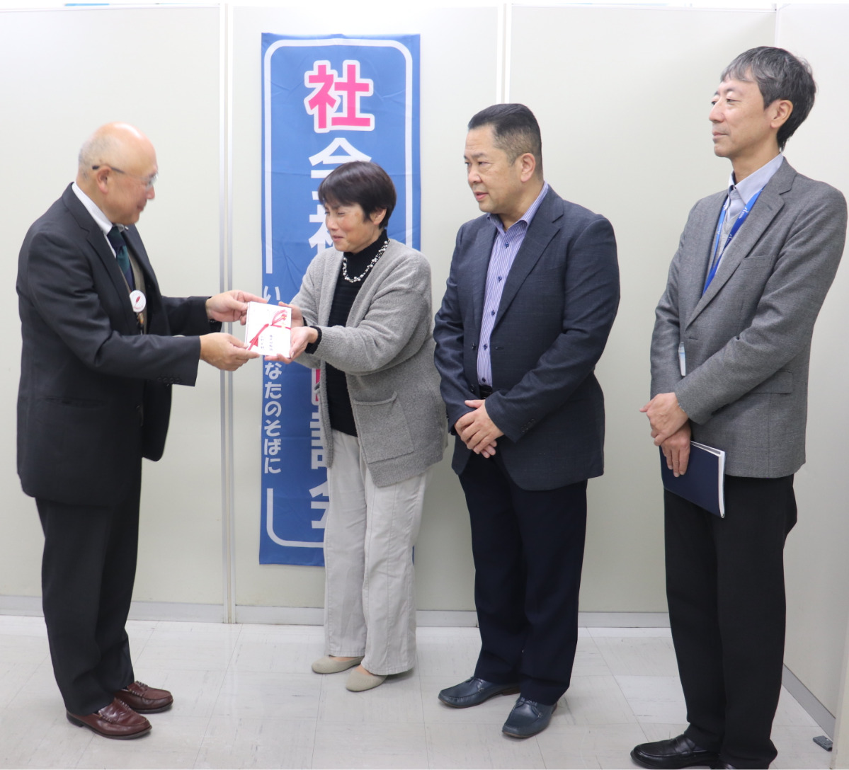 港北・青葉・緑・都筑区の労働組合連合体で地域福祉活動を行っている横浜労働者福祉協議会北部支部(上野一美支部長)のメンバーらが1月9日、横浜市港北区社会福祉協議会を訪れ、寄付金5万円を贈呈した。