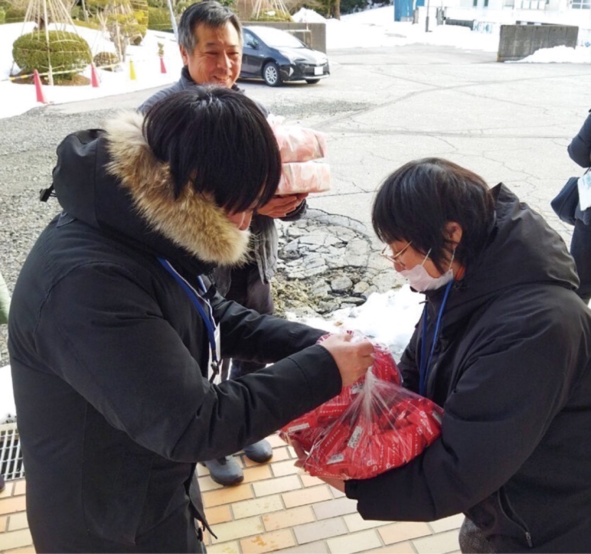 昨年同様、寄贈品を託されたのは同校PTA会長の遠藤教一さん。遠藤さんはこれまでに計14回能登半島を訪問し、支援活動を行っている。14日夜に同行メンバー10人で珠洲市に向かい、15日に地域の団地や小学校で住民らにチョコを寄贈した。「皆さん喜んで何度も読み返していて、児童たちの思いが伝わったと思う」と遠藤さん。