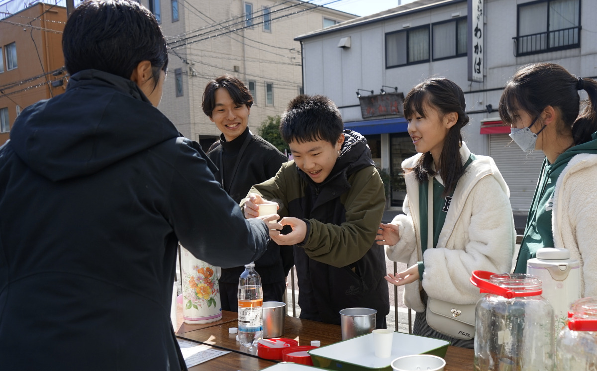 レモンソーダとホットレモンを販売したのは太尾小学校5年4組の児童ら。「地域の人と関わりたい」「世界とつながりたい」などの思いから、ユニクロなどを展開する(株)ファーストリテイリングの「”届けよう、服のチカラ”プロジェクト」に参加した。同プロジェクトは、子どもたちが主体となり、着なくなった服などを難民などの服を必要としている人に送る取組みで、地域から3751着の服を集め、同社を通してモルドバなどの難民に送り届けた。協力してくれた地域の人たちに感謝を伝えようと、同まつりでレモンジュースを販売することにしたという。同小の高田彩乃さんは、「必要としている人に喜んでもらえて、役に立ててうれしい。大事に着てほしい」と微笑み、「地域の人にも感謝を伝えたい」と口にした。ほかの児童らかも、「今まで体験したことのないことばかりで、いろんな人と関わることができた」と満足げに話す姿も見られた。